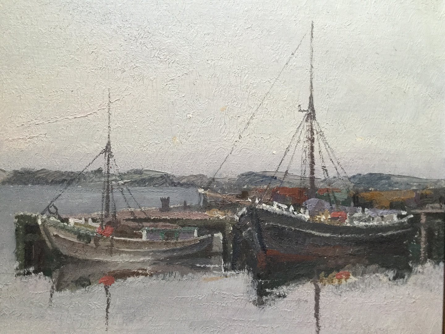Maleri af Jens Sinding Christensen - Sejlskibe i havn.