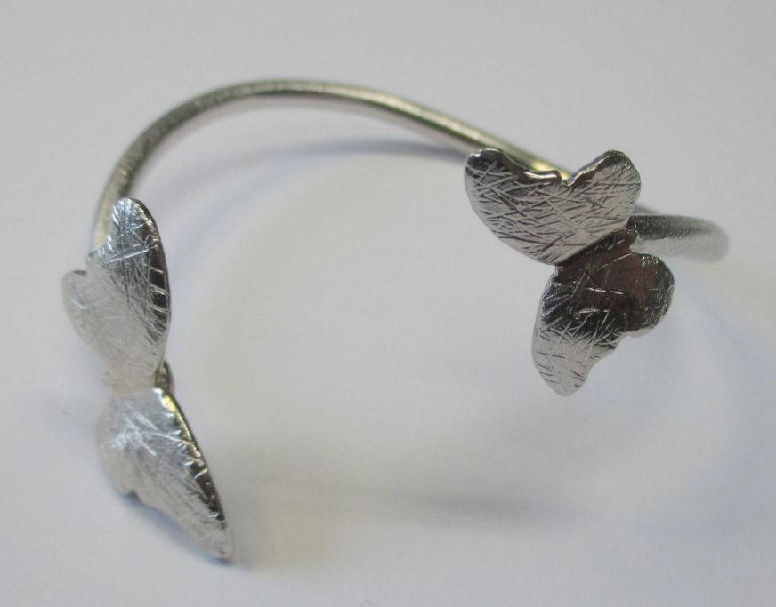 Design armring af sterling sølv, Matogi group, Odense, (efter 2010), Danmark. Detkoreret med sommerfugle. Stemplet. Dia.: 6 cm. Vægt.: 20,1 gram.