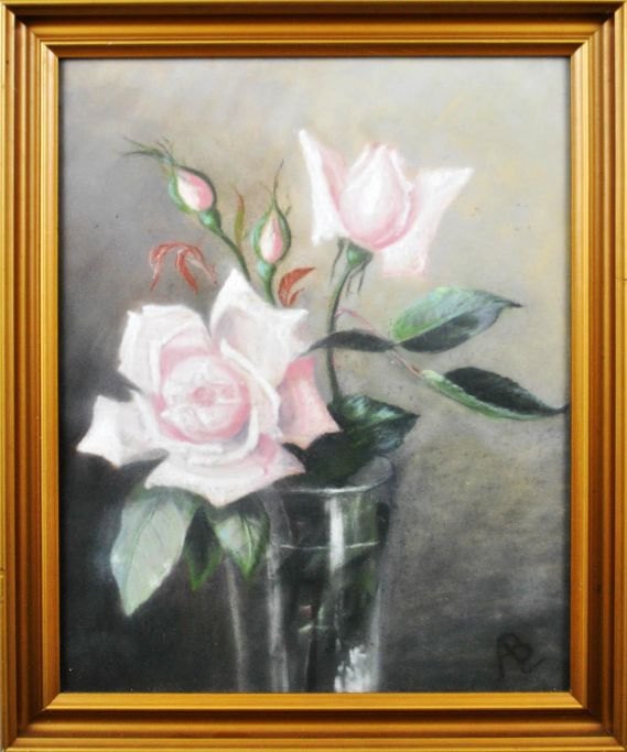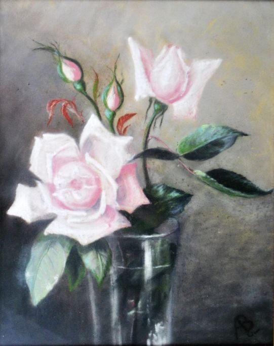 Dansk kunstner (19. årh). Roser i et glas. 32 x 25 cm. Med monogram.