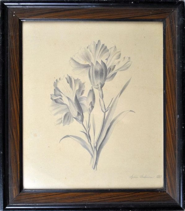 Andersen, Sophie. 19. årh. Danmark. En nellike. Signeret: Sophie Andersen 1881. 19. årh. 26 x 22 cm.