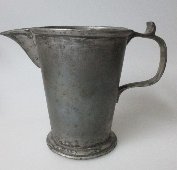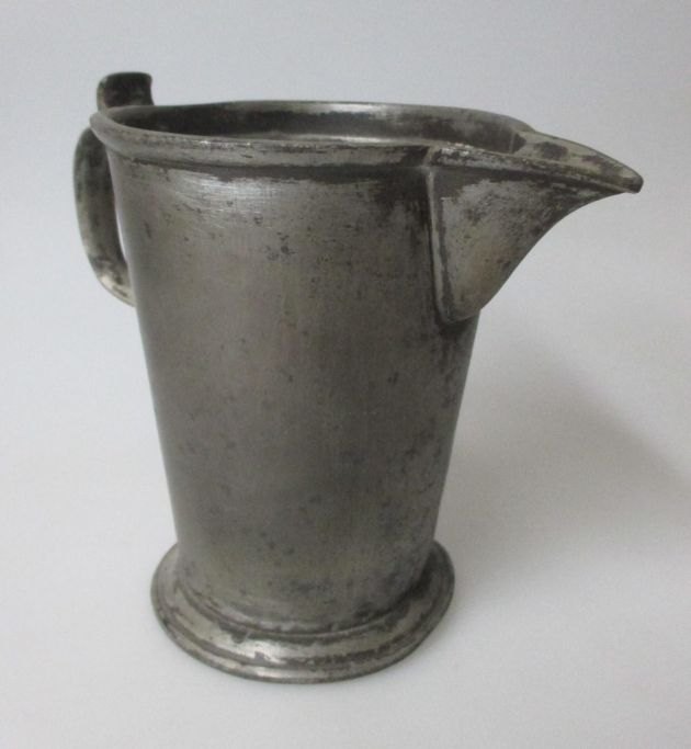 English pewter jug, 19th century. With a handle and spout. Unstamped. Height: 12.5 cm.