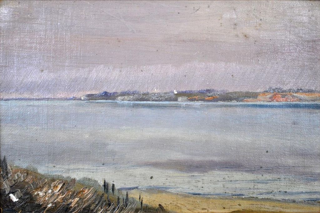 Foss, Harald Frederik (1843 - 1922) Danmark. Landskab. Olie på pap. Verso betegnet. Dateret: 2.4.85. 15 x 22 cm.