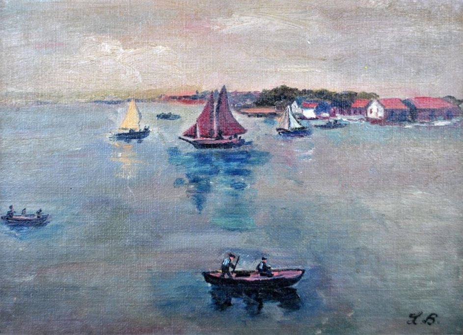 Bonfils, Louise (1856 - 1933) Danmark: Marine med både.