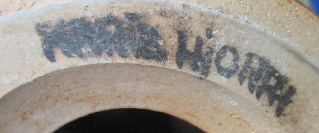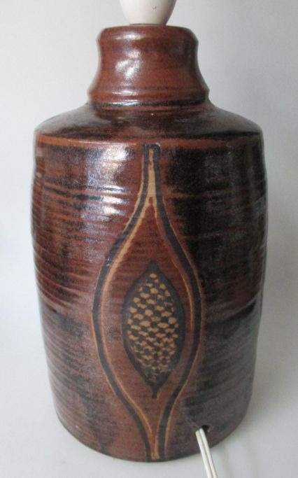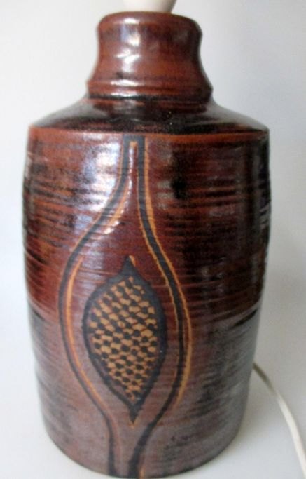 Keramisk bord lampe, Marie Hjorth (1941 - ) Danmark. Brun glaseret med dekorationer. Signeret. Højde.: 26,5 cm.