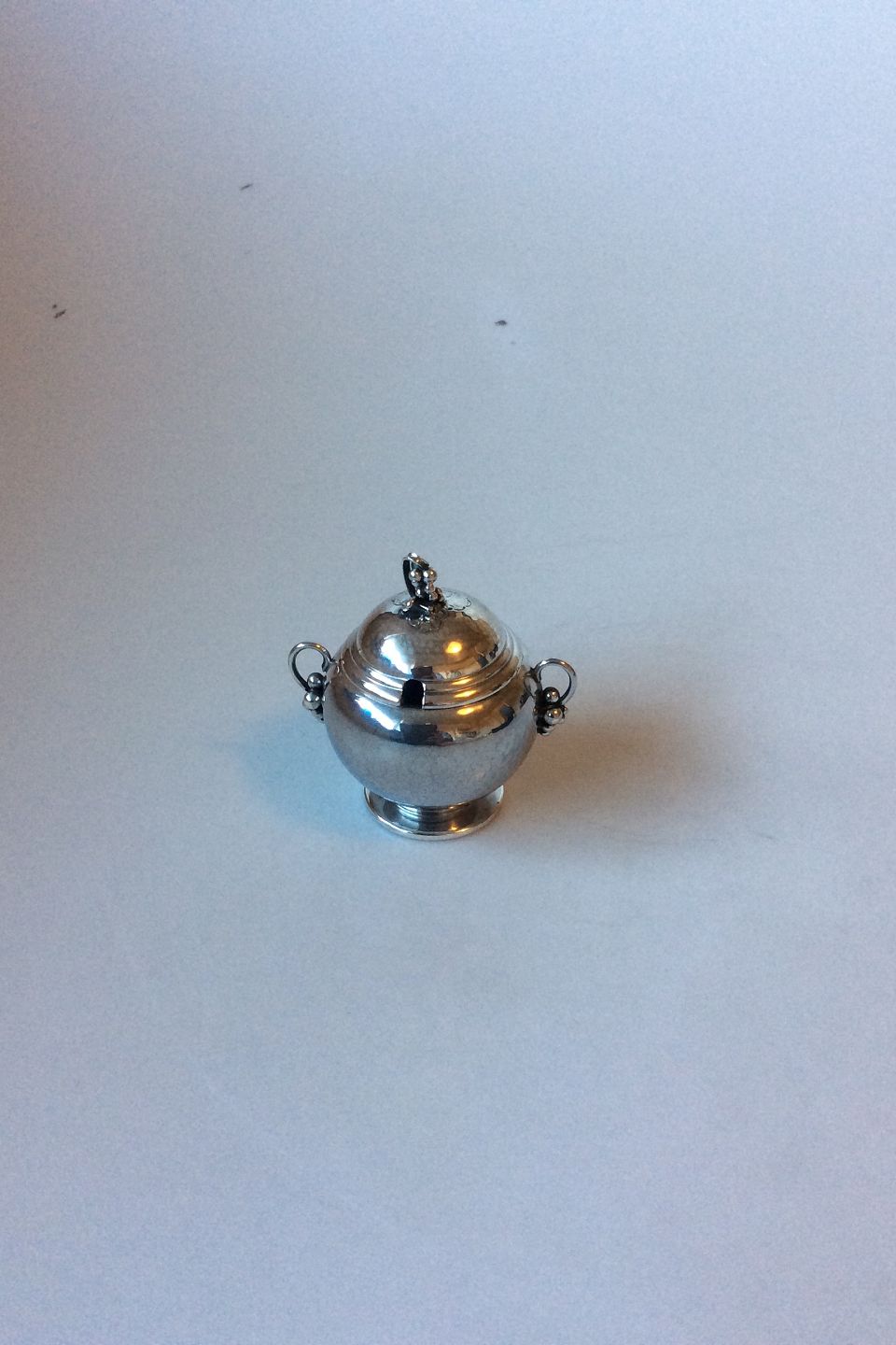 Georg Jensen Sterling Sølv Sennepskrukke med blå emalje No 724