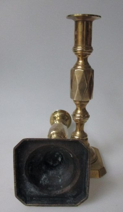 Par engelske messing stager. 19. årh. 8 kantet fod - profileret stamme med ruder motiv. Højde.: 19 cm.