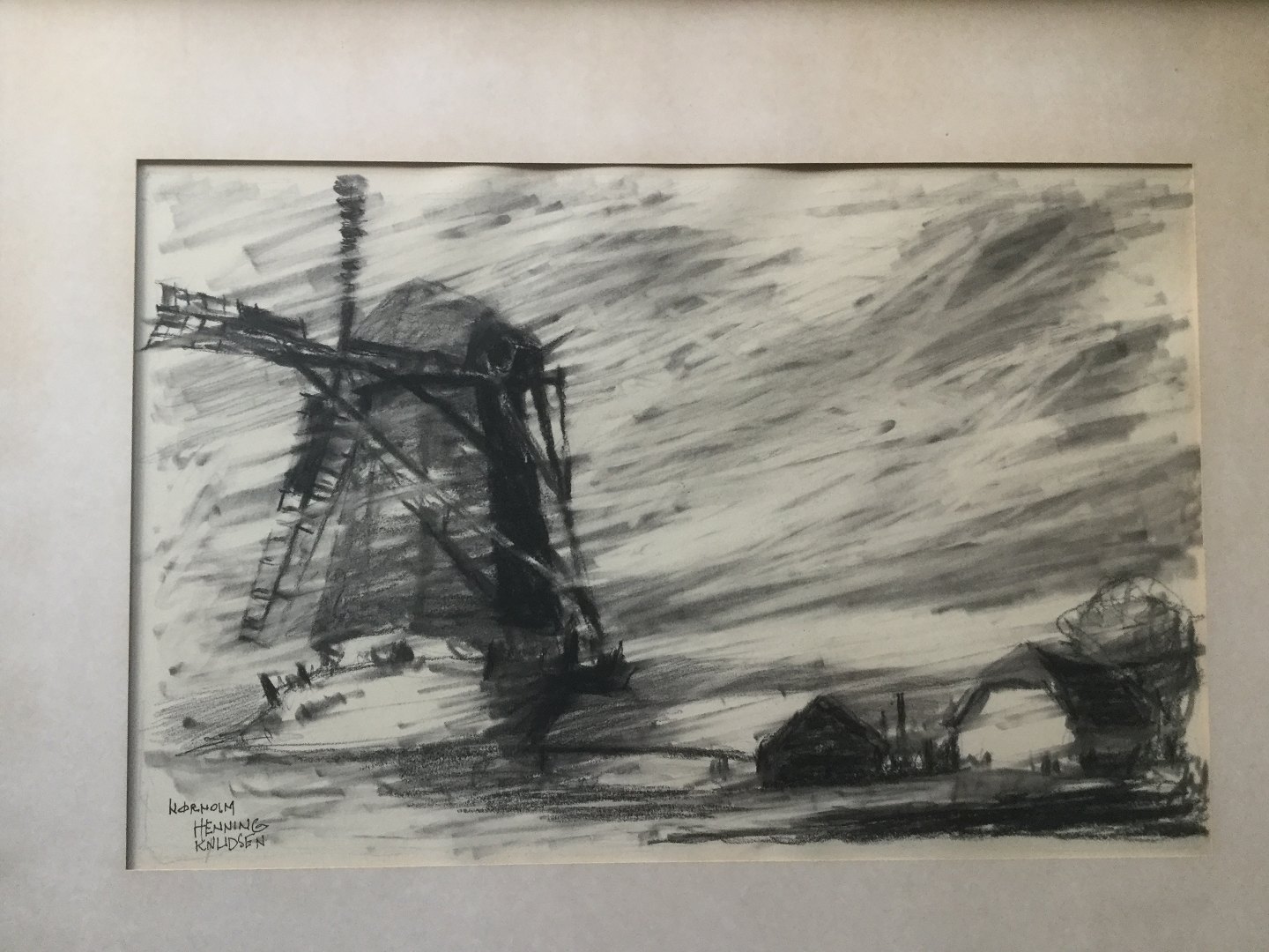 Tegning af Henning Knudsen - "Parti fra Nørholm Mølle"