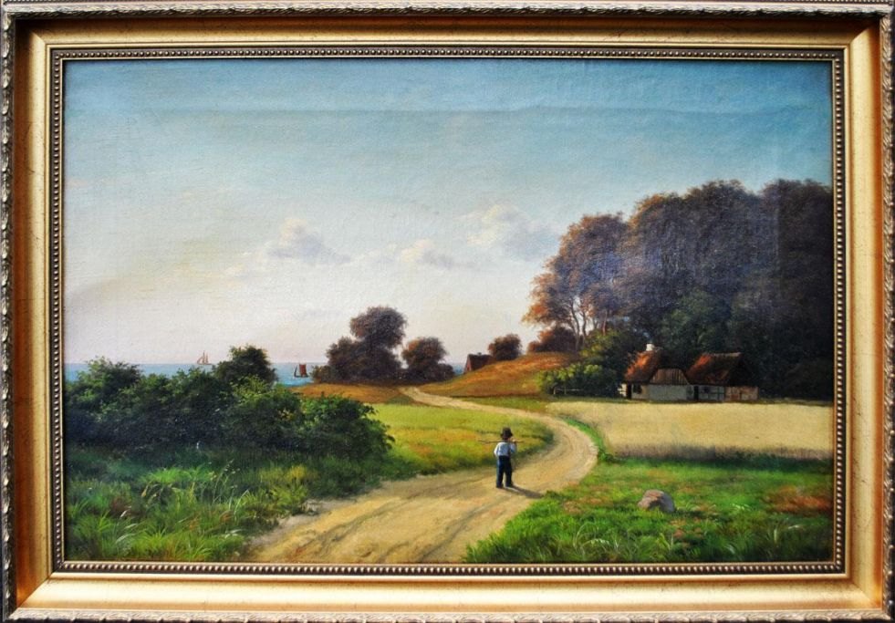 Dansk kunstner, 19. årh. En dreng på en vej. Olie på lærred. Usigneret. 40 x 60 cm.