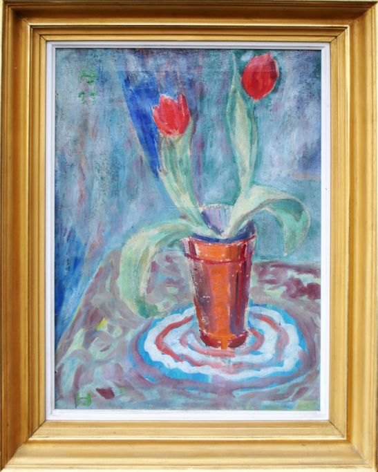 Jensen, Holger Jens Sophus (1900 - 1966) Opstilling med potteplante. Olie på lærred. Signeret.: Monogram. 51 x 36 cm.