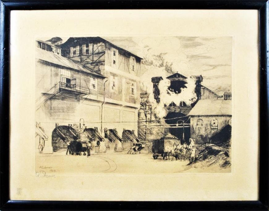 Eckener, Alexander (1870 - 1944) Tyskland. Et  stålværk. Radering. Signeret: A. Eckener 1924. 26 x 37 cm.