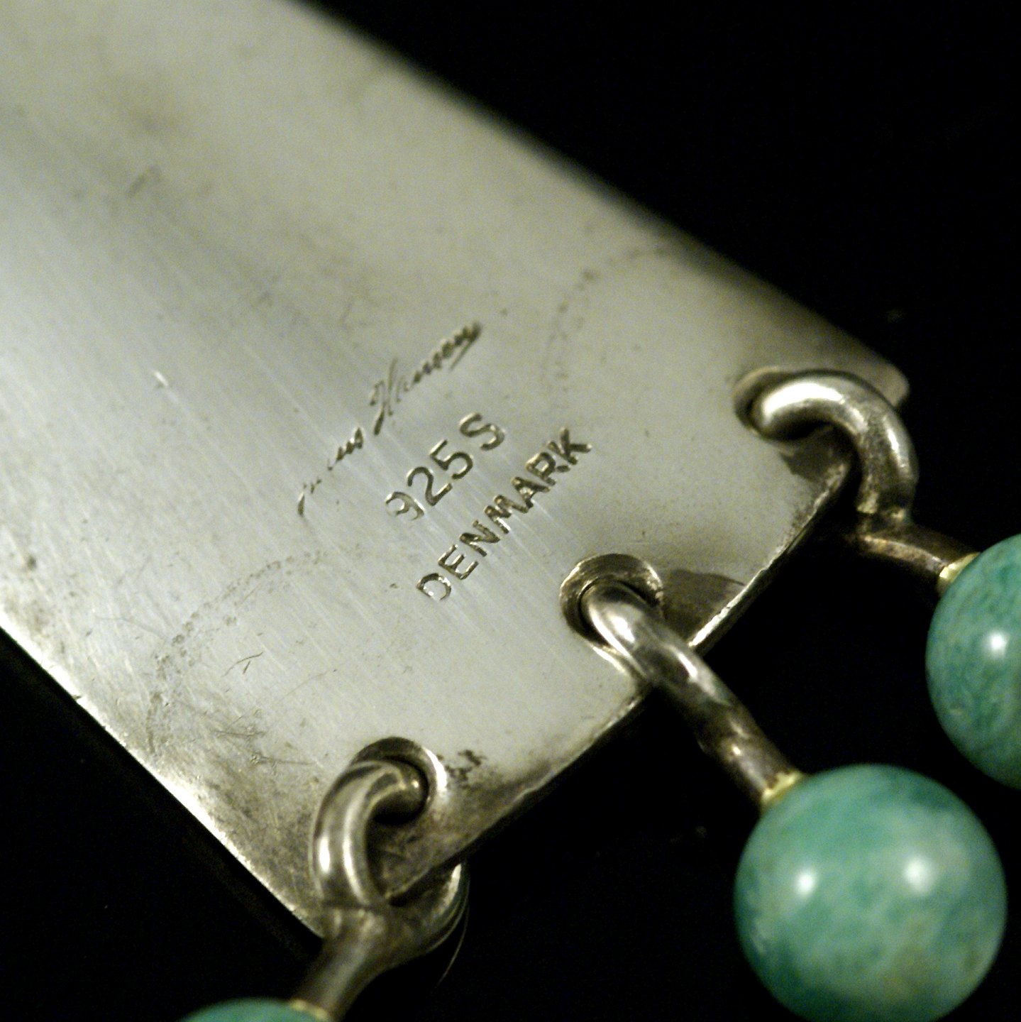 Hans Hansen. Moderne Halsring i Sterling sølv med Amazonite. 1960erne