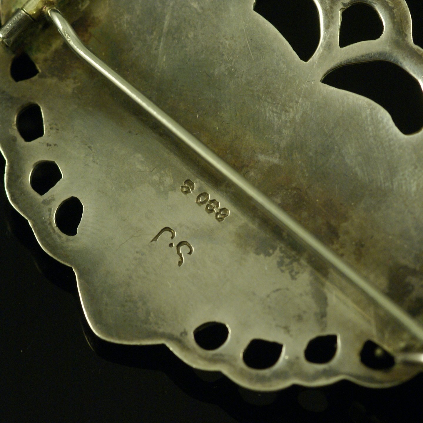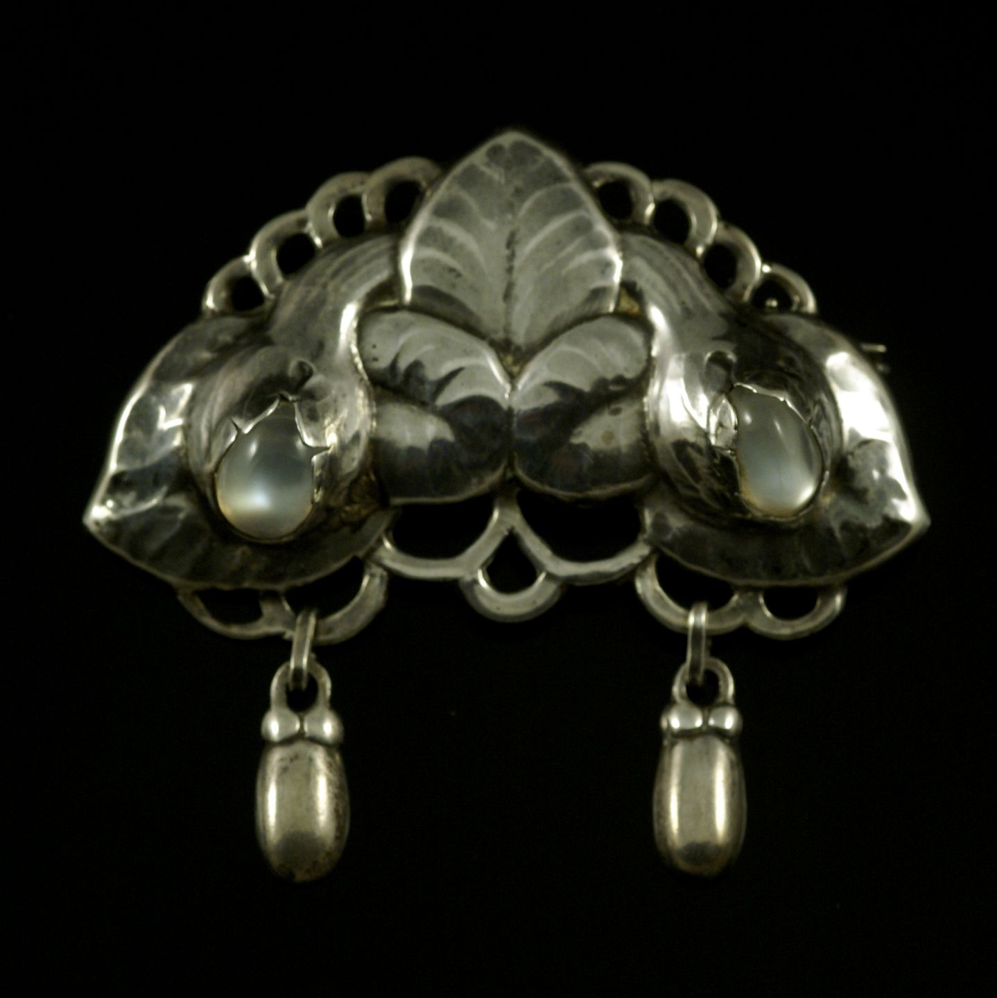 Evald Nielsen. Skønvirke Broche i Sølv med månesten.
