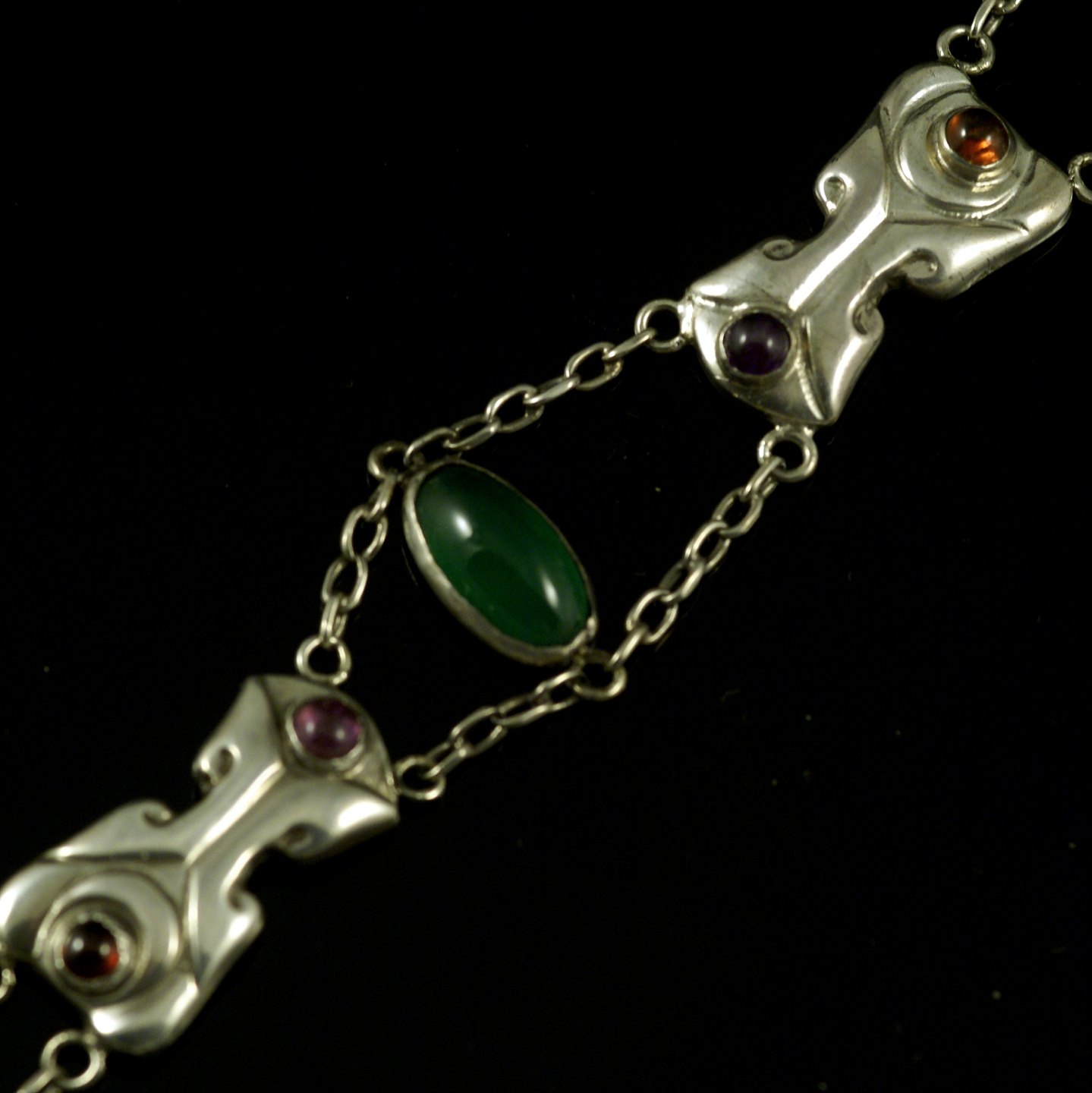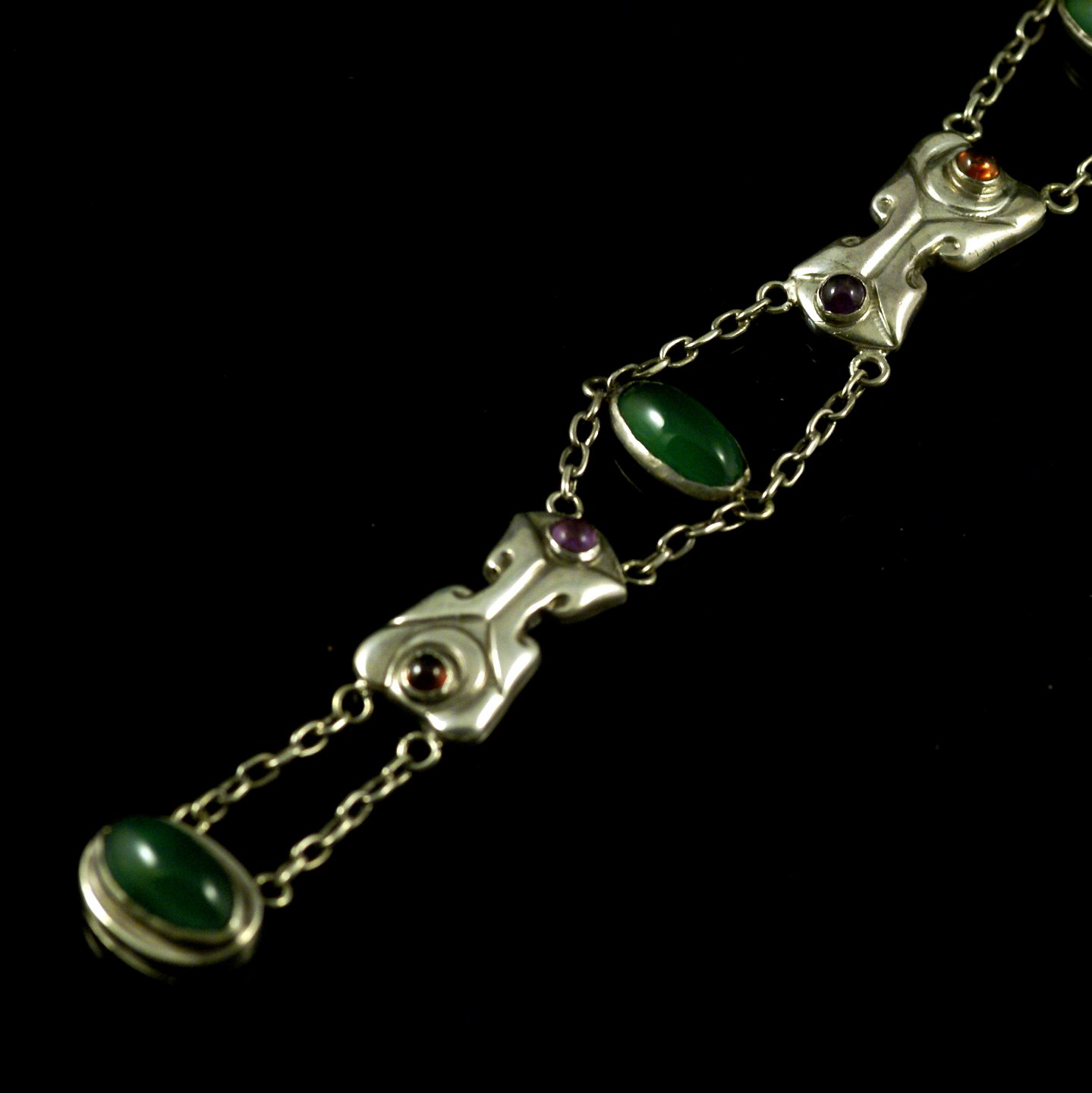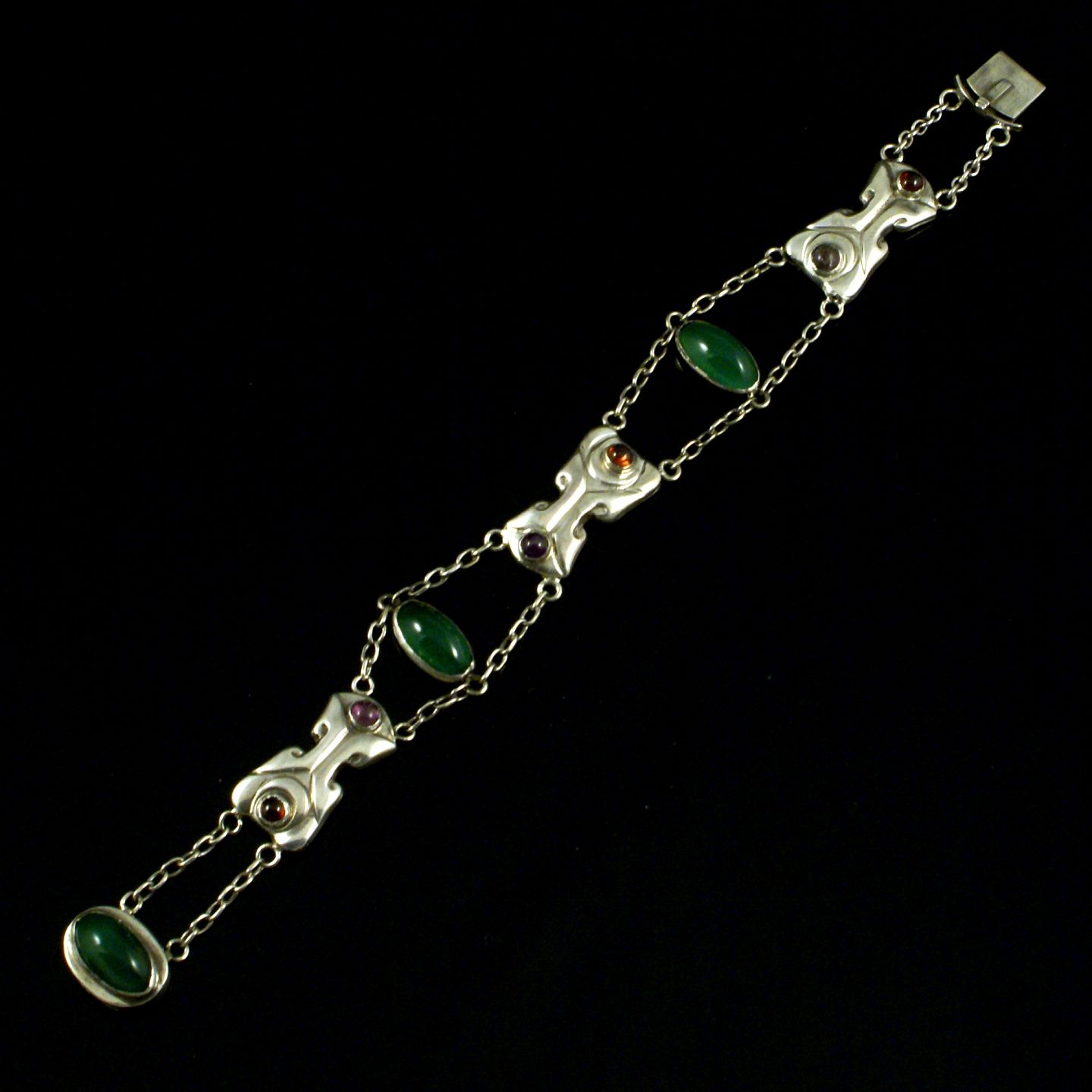 Mogens Ballins Eftf. Skønvirke Armbånd i Sølv med grøn agat, ametyst og granat.