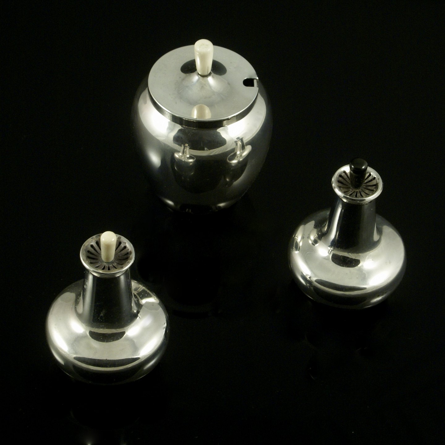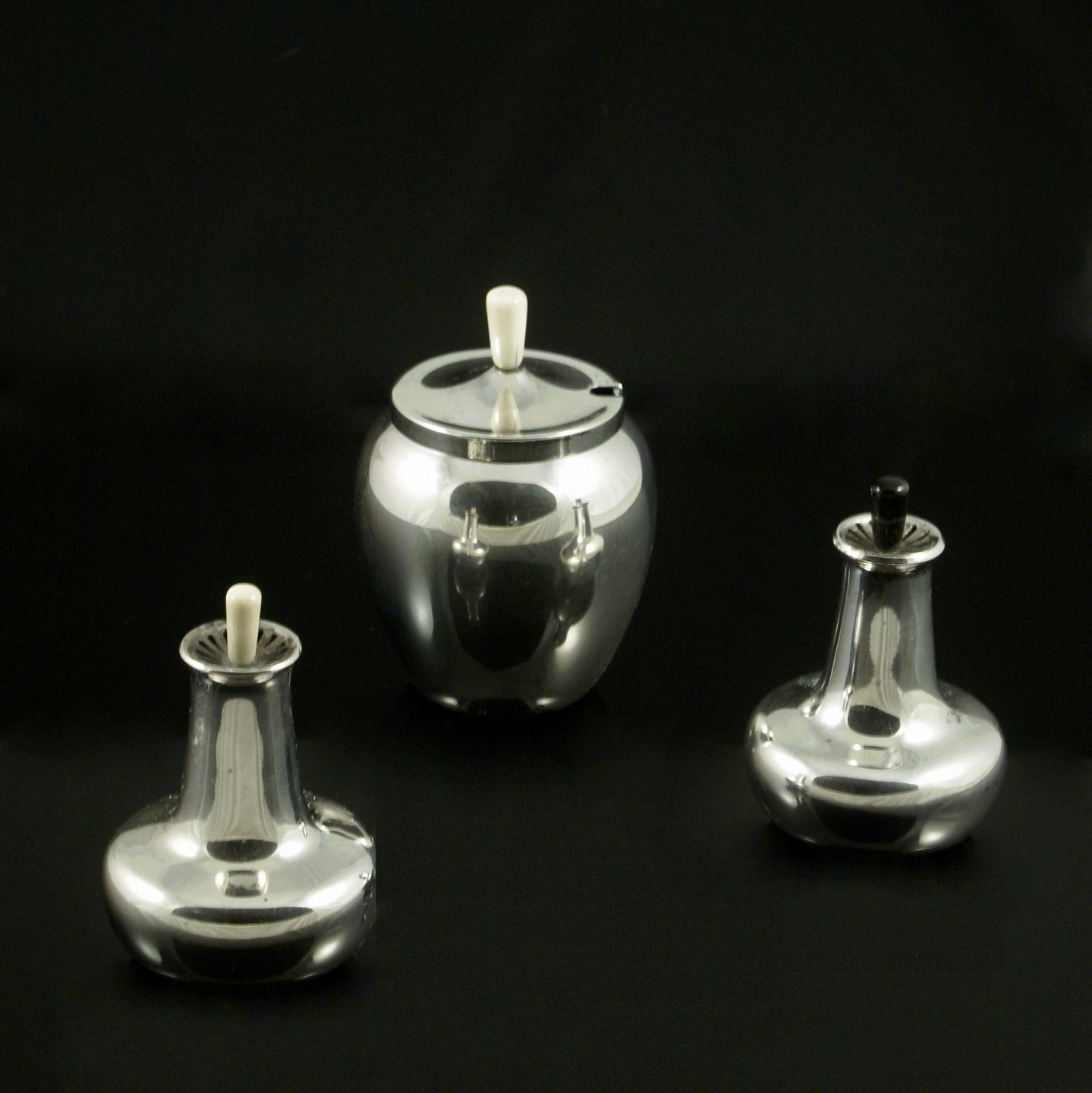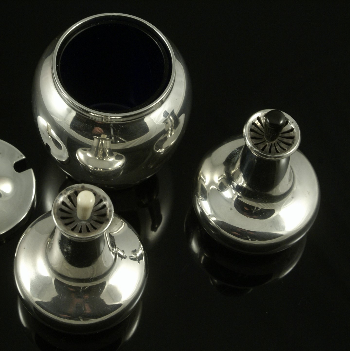 Hans Bunde / Cohr. Sterling Silver Mustard Pot and Salt & Pepper Shakers. Denmark - 1950s