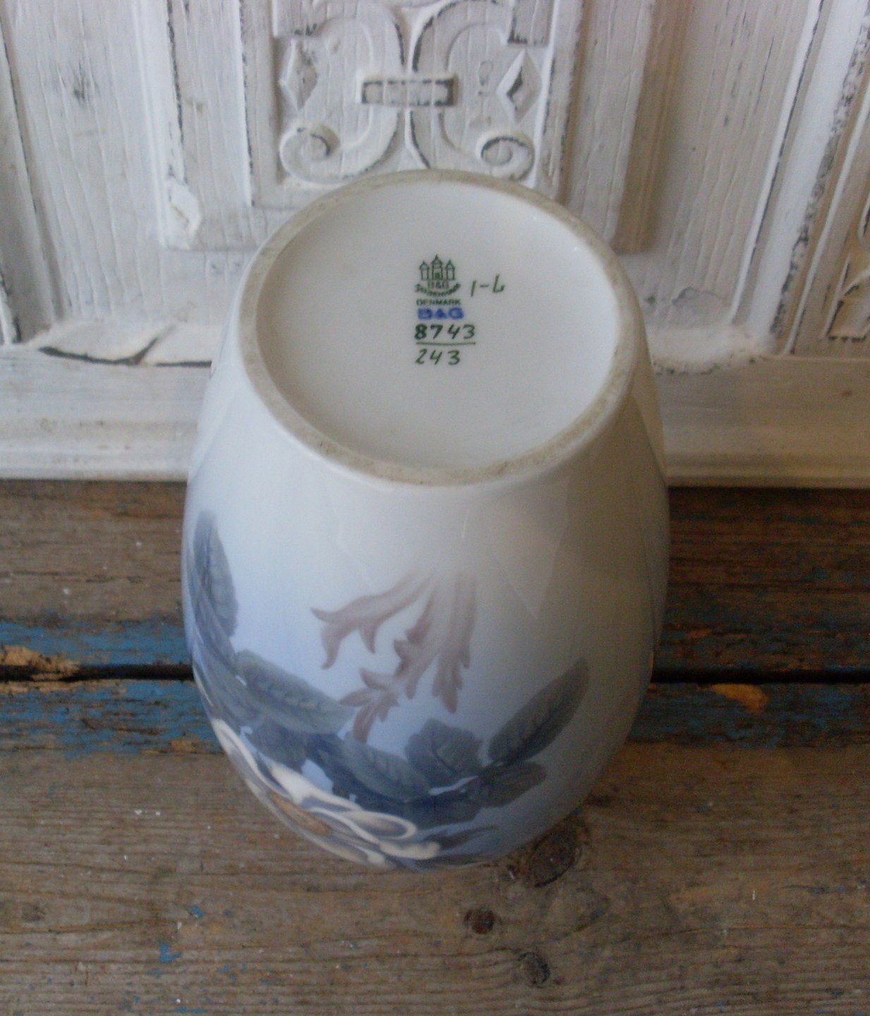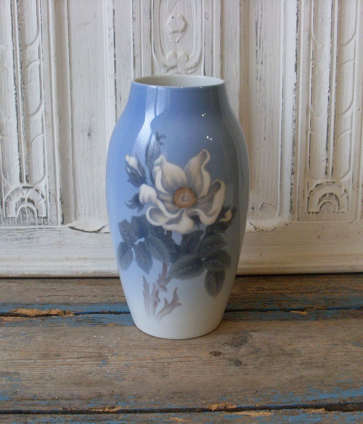 B&G vase dekoreret med hvid hyben rose