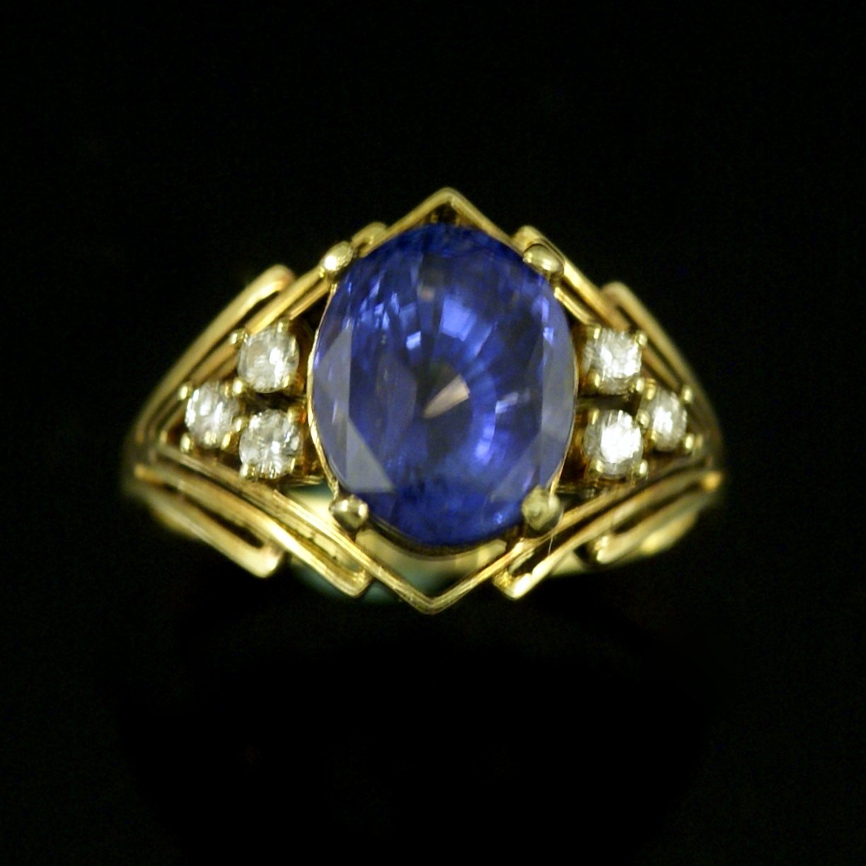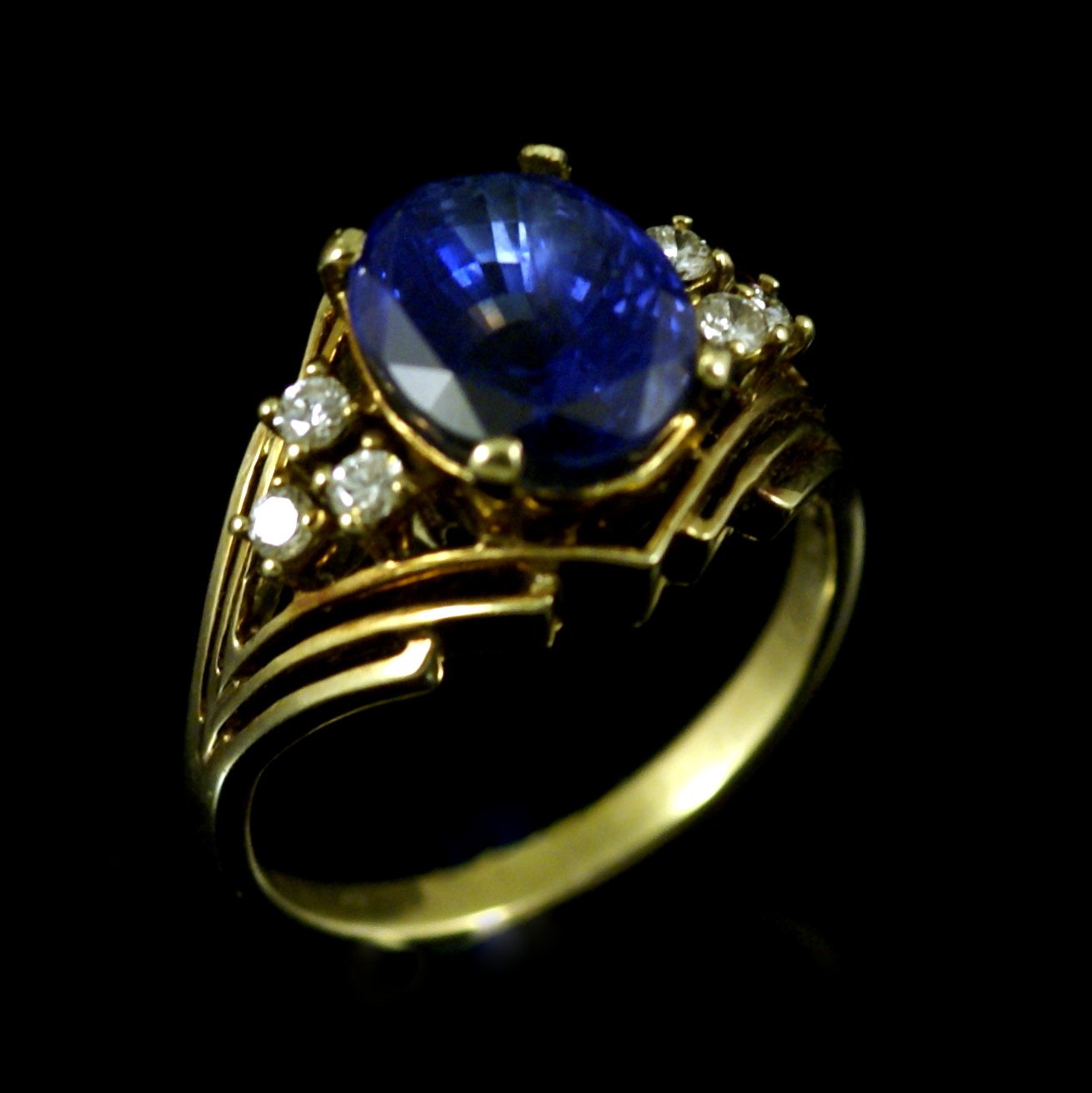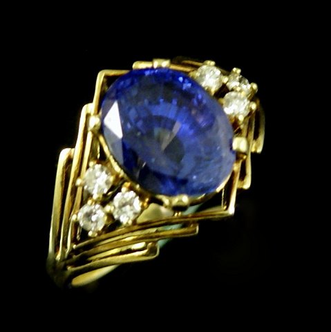 Ring i 18k guld med stor oval Safir og Brillianter.