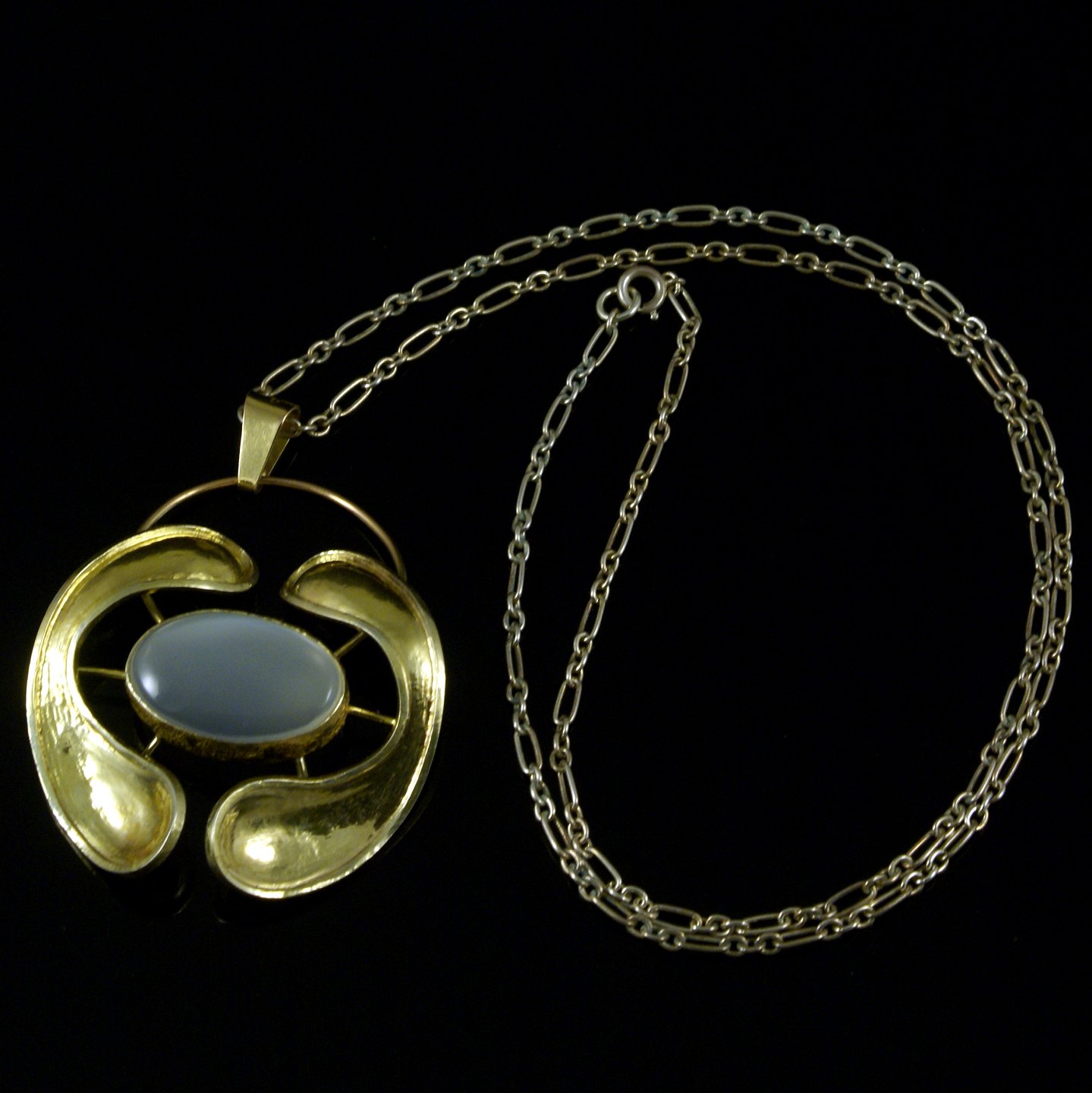 Bent Exner (1932-2006). Halssmykke i lueforgyldt sterling sølv med månesten