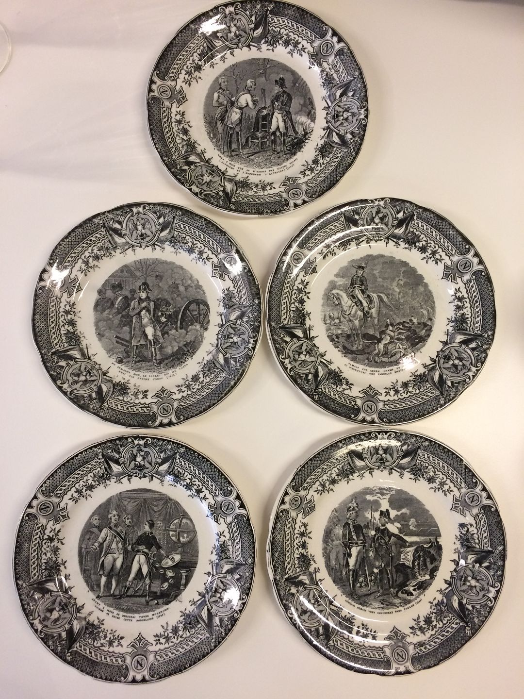 5 frokosttallerkner fra Digoin France med Napoleon motiver.
