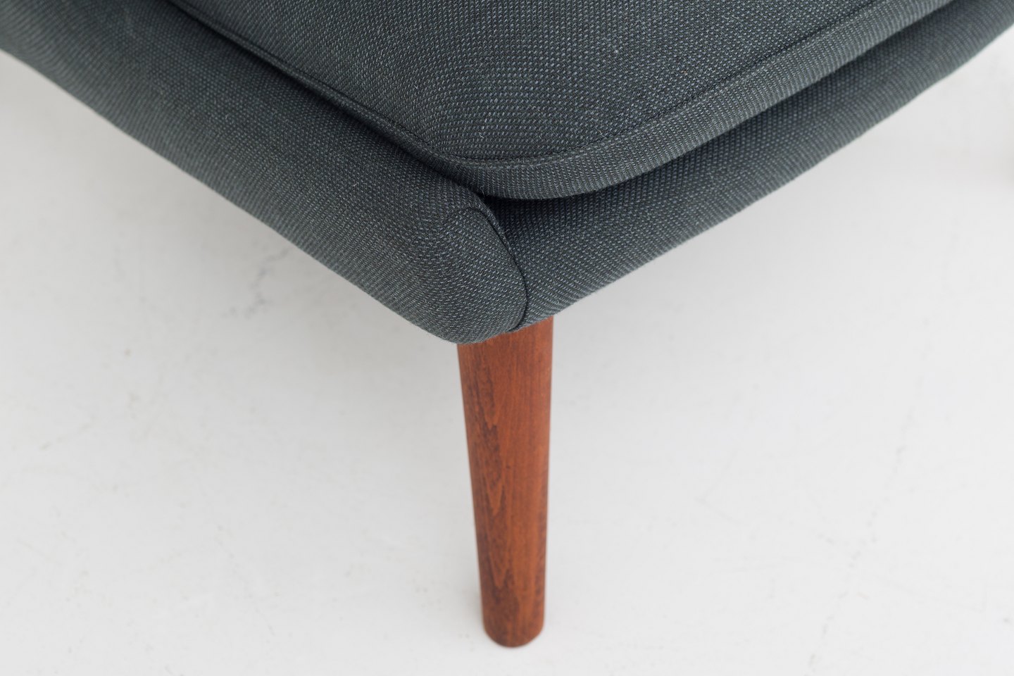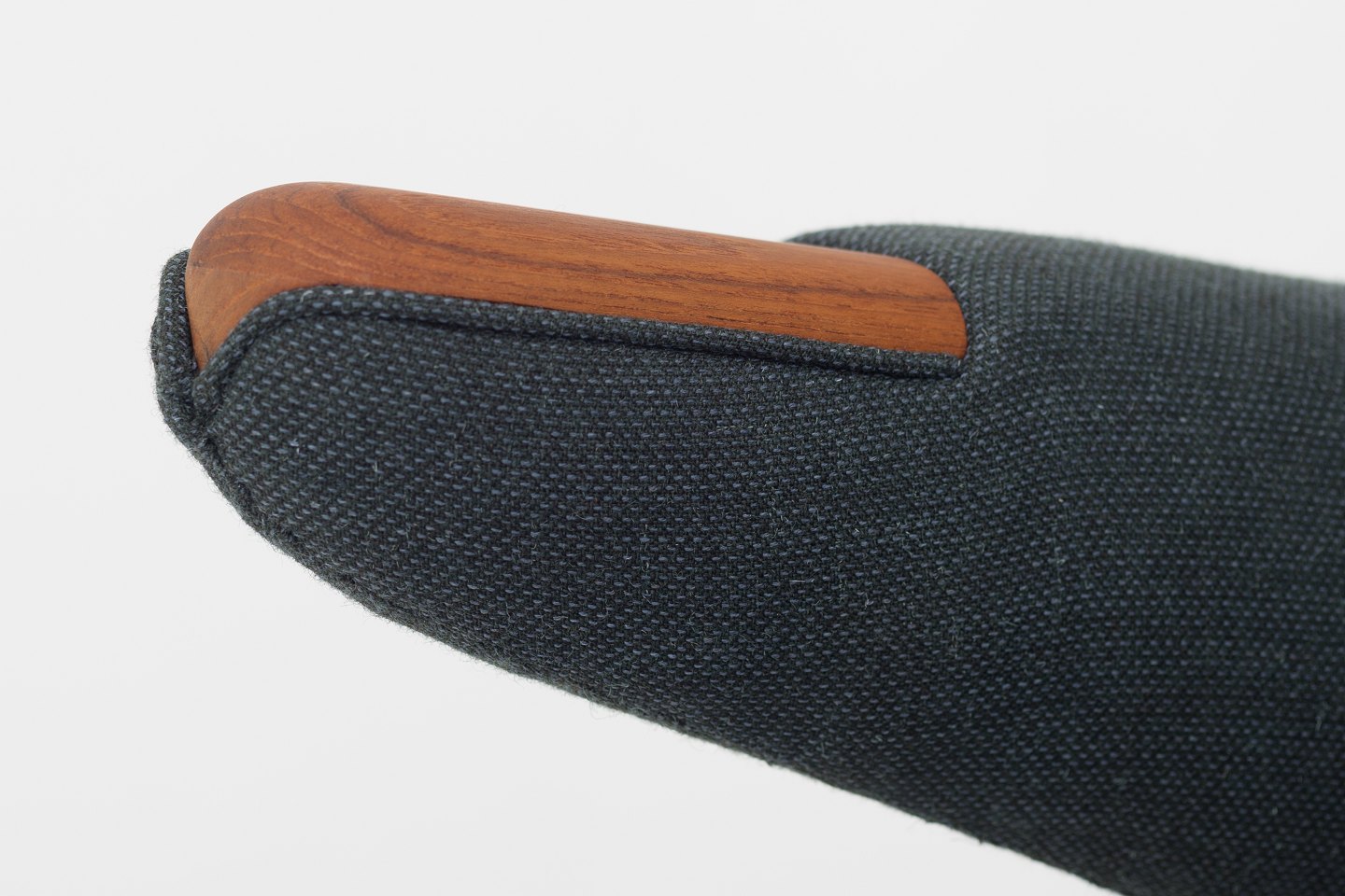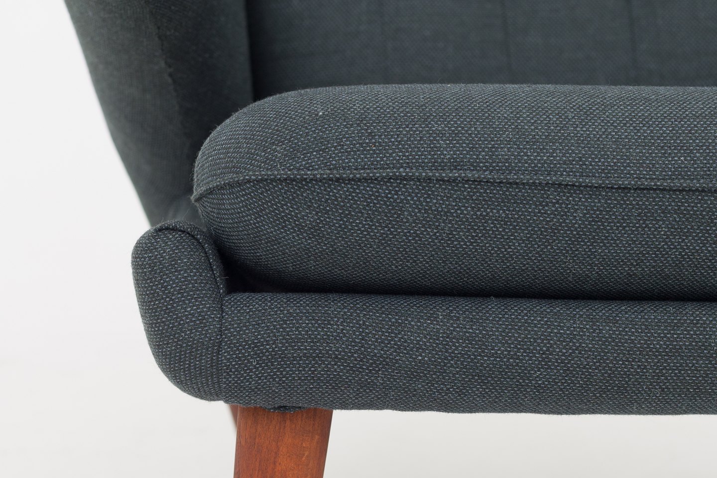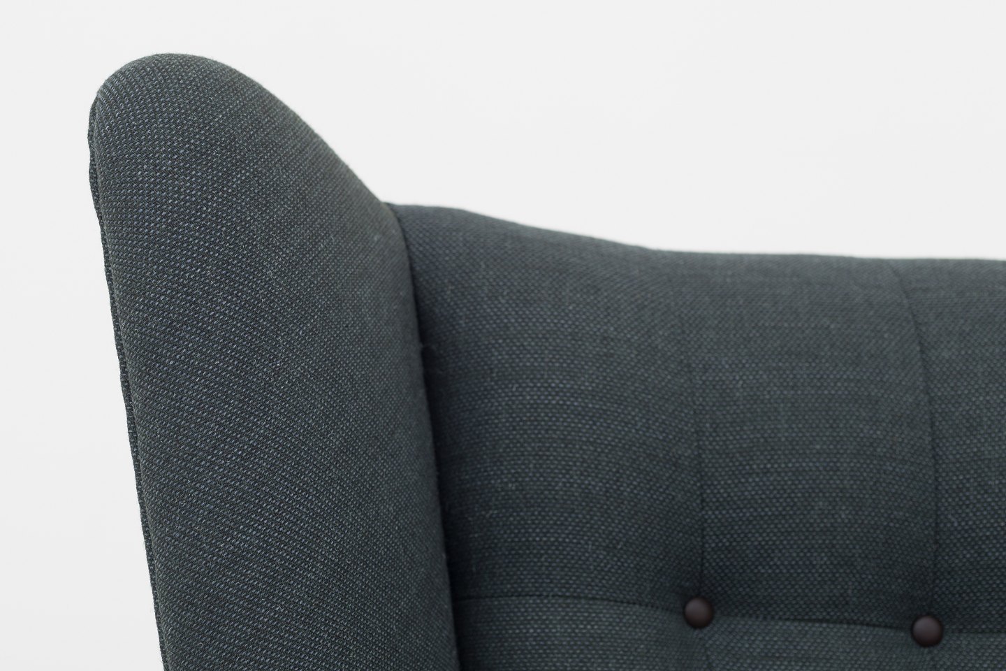 AP 19 - Nybetrukket Bamsestol i Clara 2-stof (code: 987) med knapper i Savanne-læder (farve: Coffee). Poter i teak og ben i eg