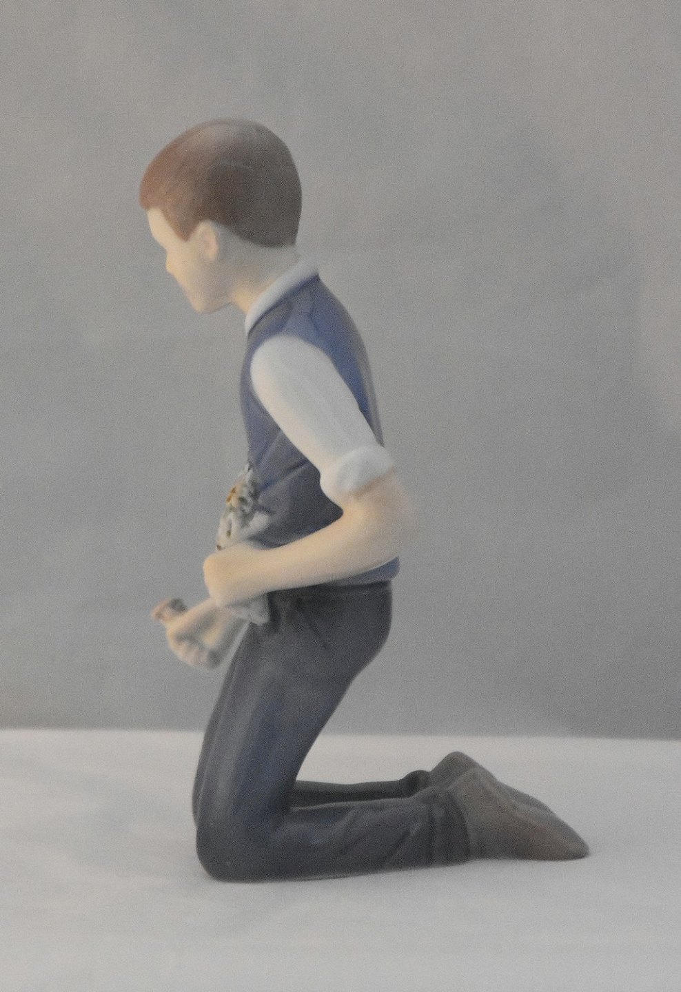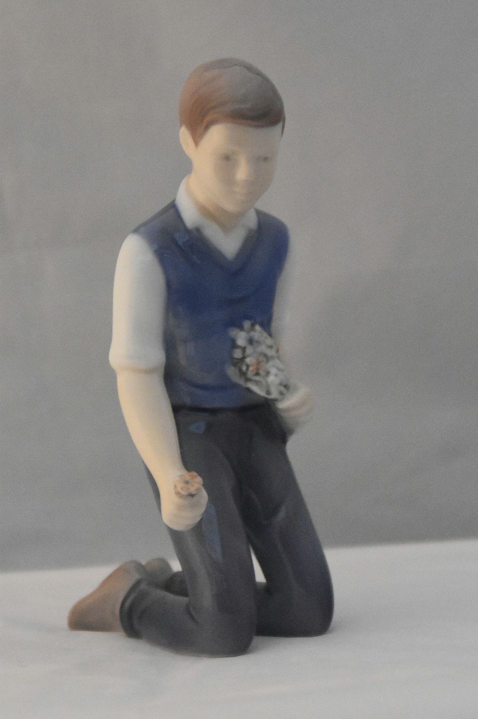 Bing & Grøndahl figur Dreng på knæ, der plukker blomster