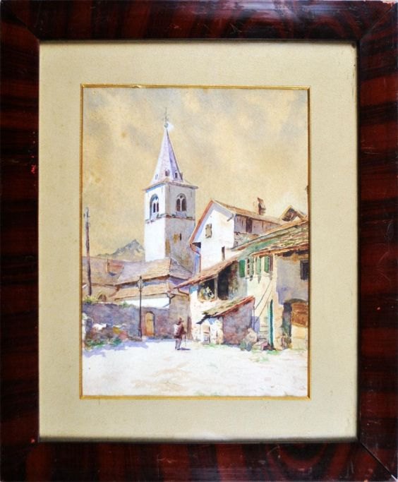Soya- Jensen, Carl Martin (1860 - 1912) Danmark. Sydlandsk byparti. Akvarel. Usigneret. 31 x 24 cm.