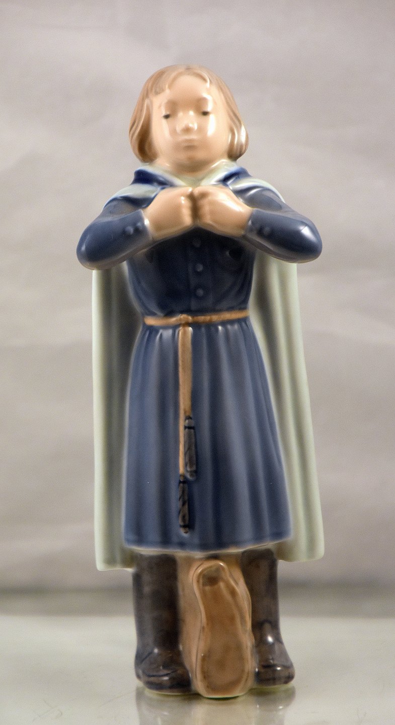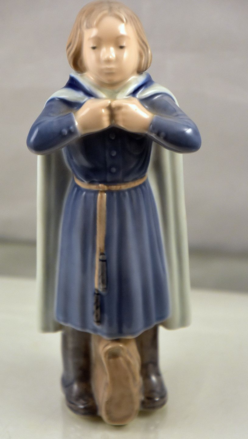 Royal Copenhagen figur Skoledreng med kappe og taske (4503), Designet af Hans Christensen. Kgl.