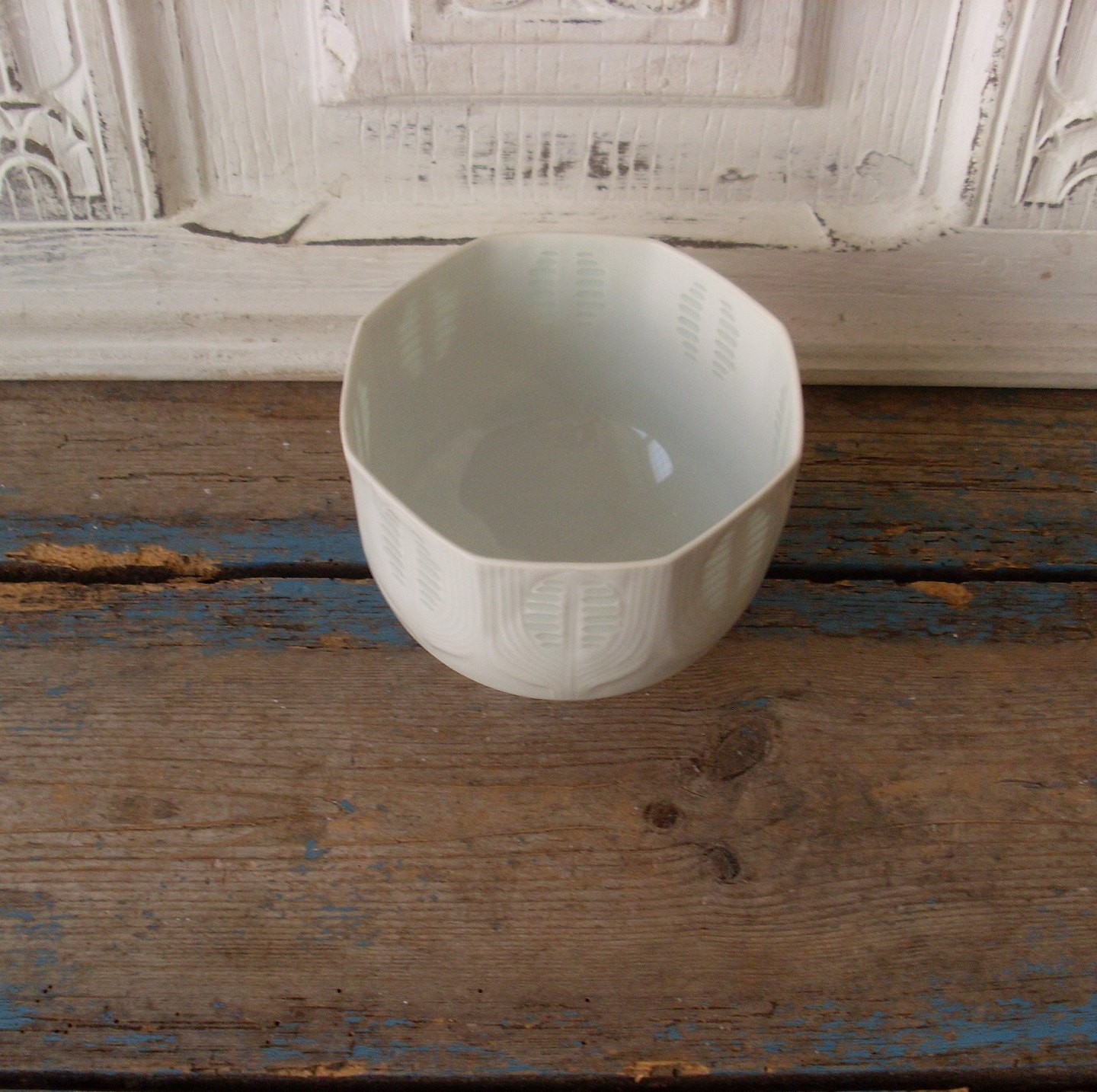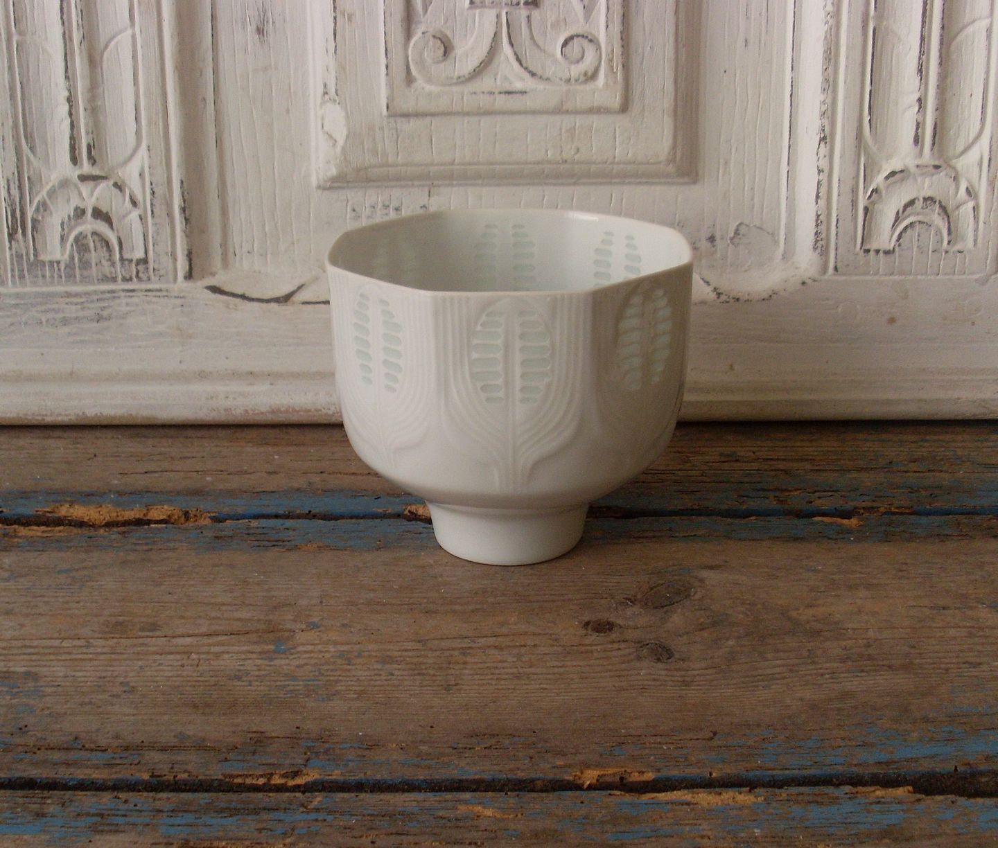Lisbeth Munch Petersen for B&G skål i Blanc de Chine, med mønster i relief i form af kornaks.