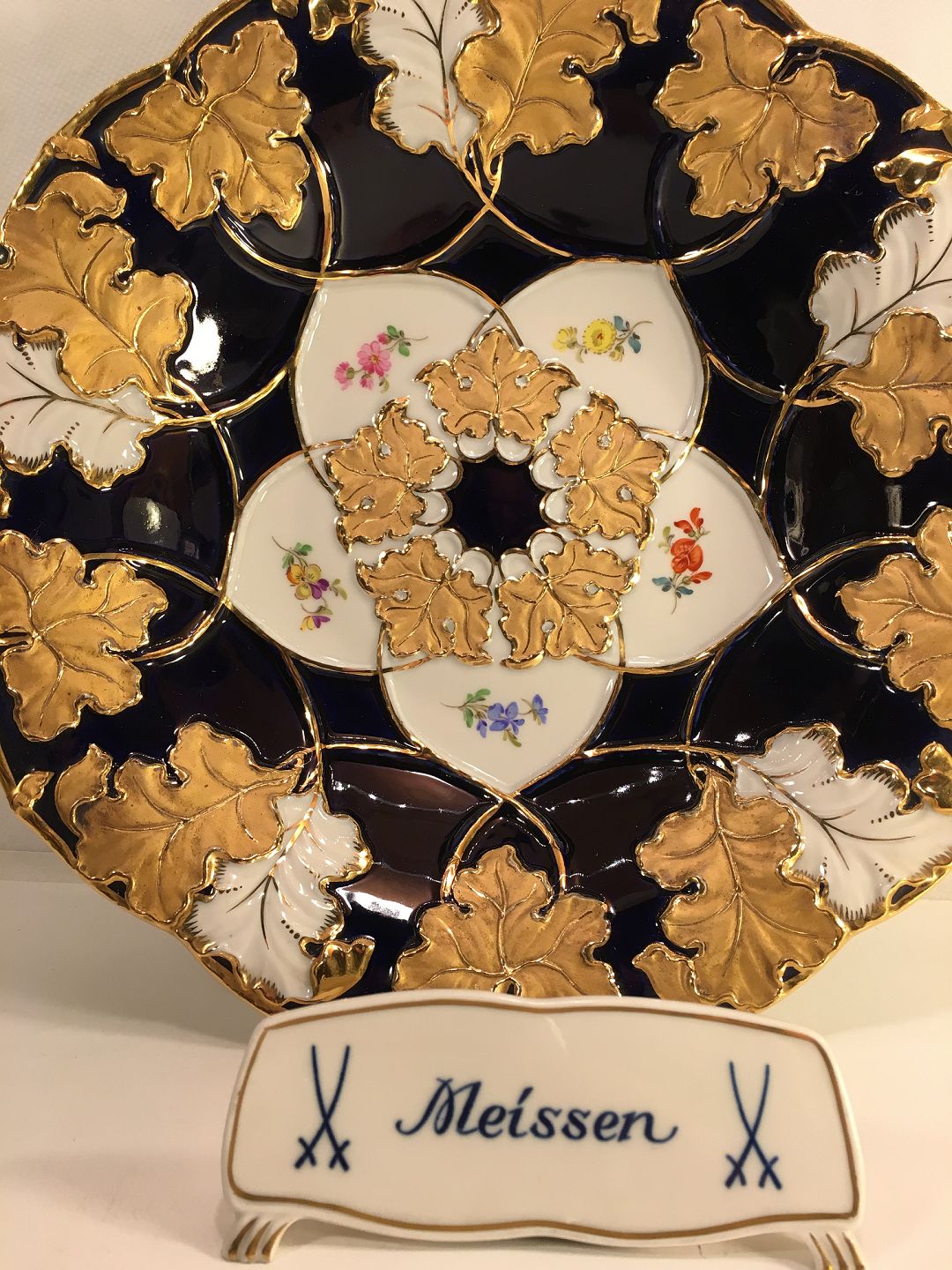 med Forgyldt dekoration i form af Blade og bemalet blomster i faddet.midte.