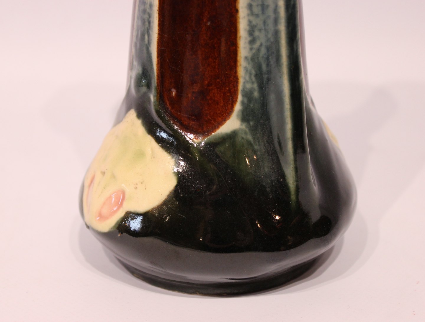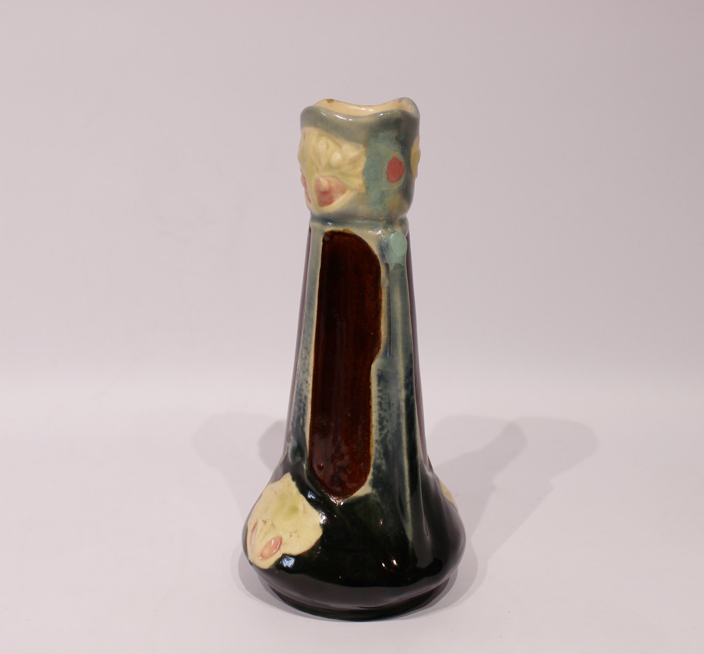 Flot keramik vase i forskellige mørke farver. Vasen er i flot brugt stand.