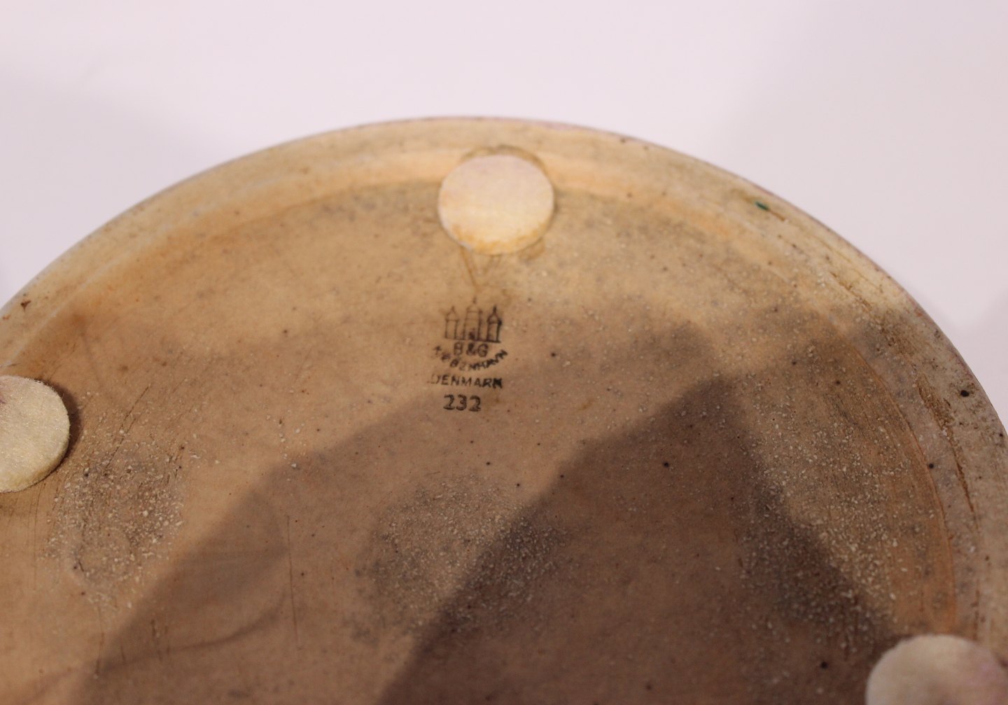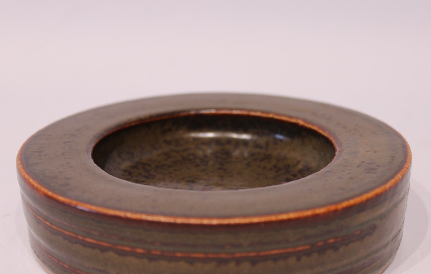 Rundt keramik fad i brune farver af Valdemar Petersen for B&G, nr.: 232.