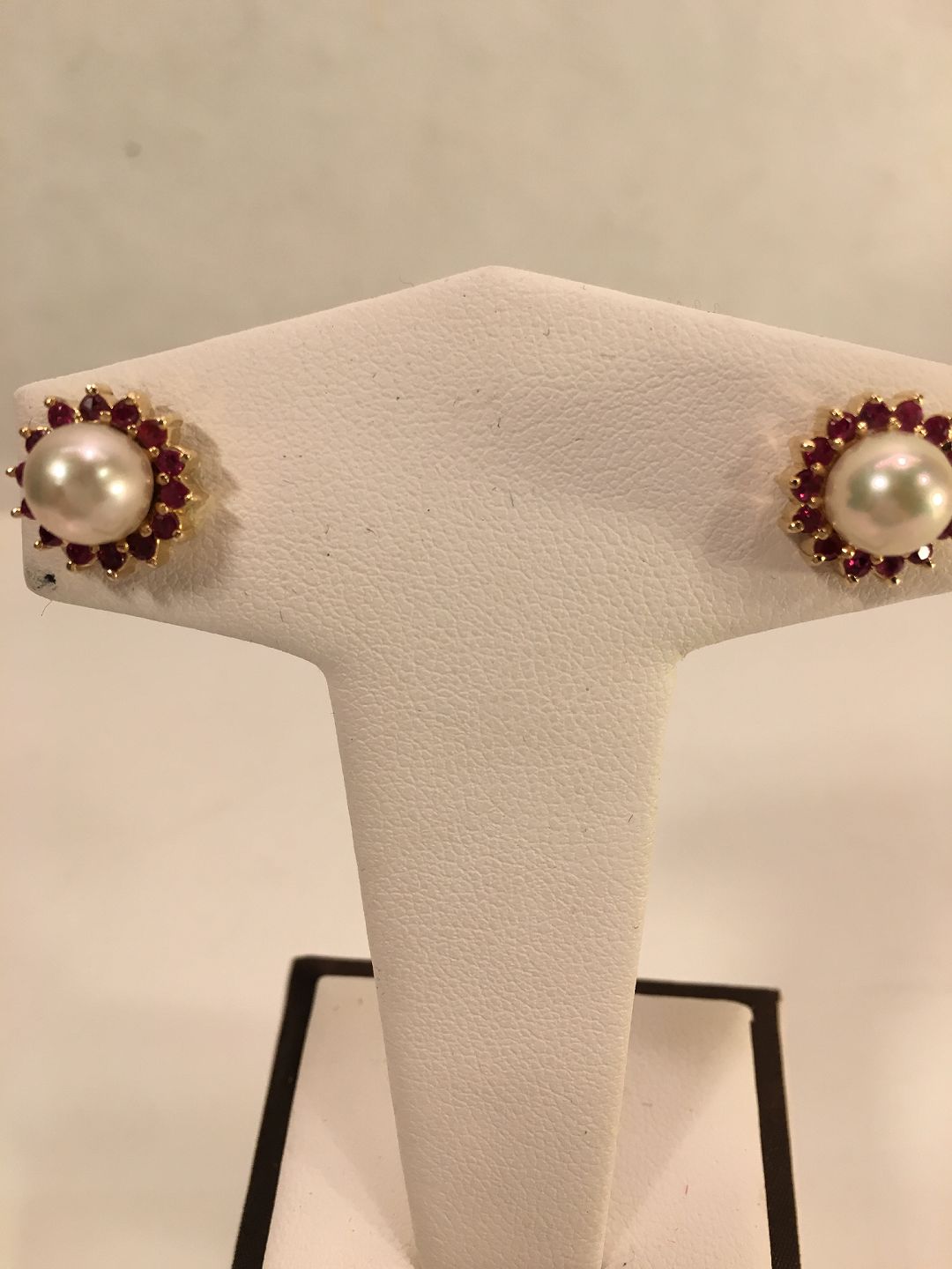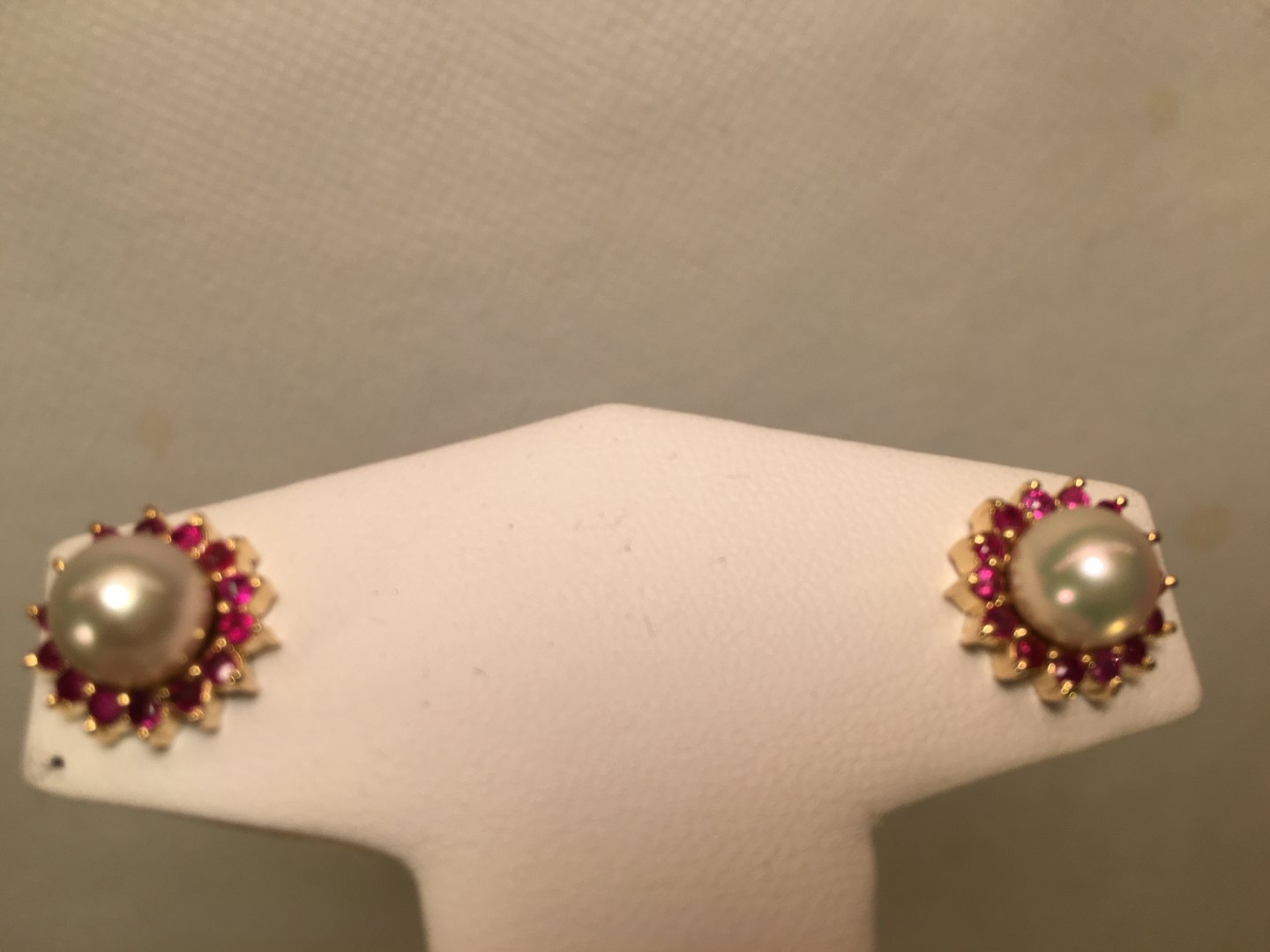 Ørestik med rubiner og perle.