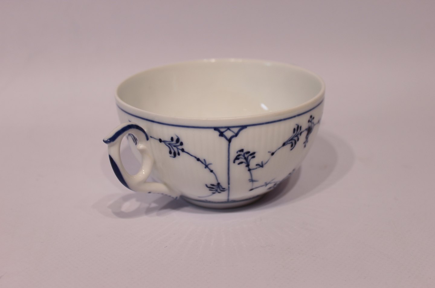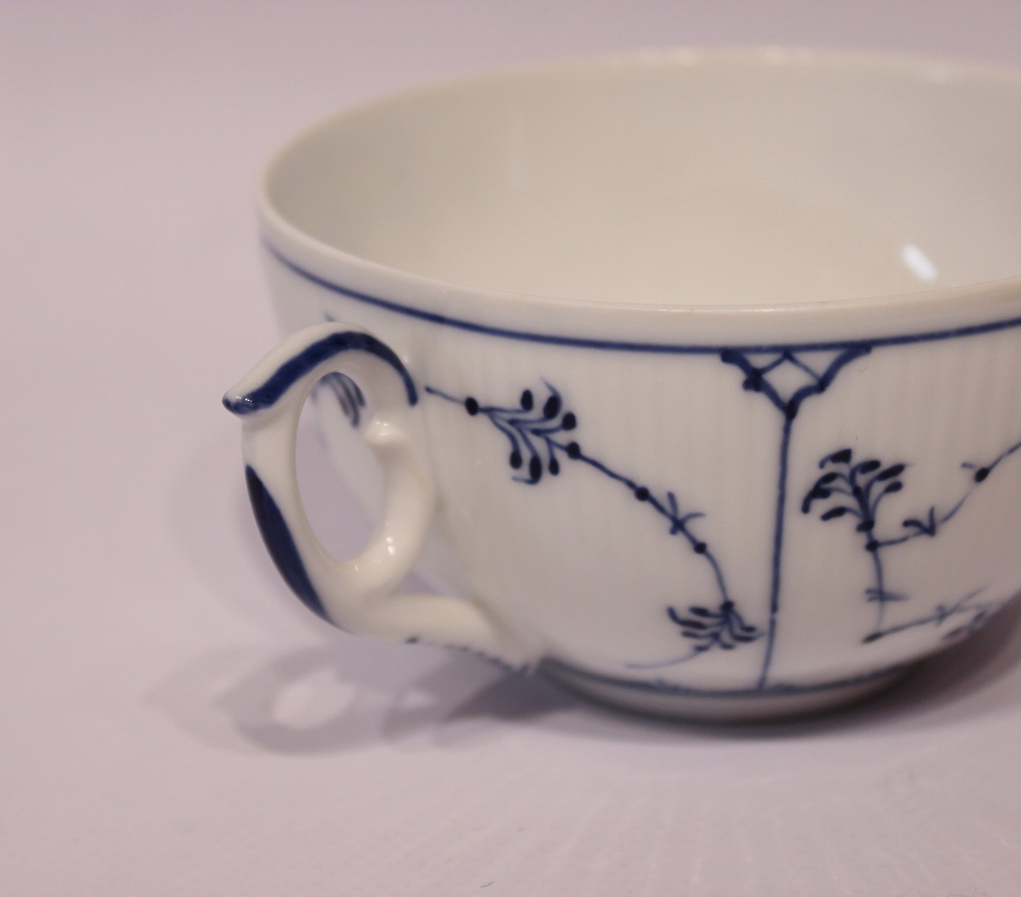 Kgl. musselmalet riflet boullionkop med underkop, #1/2199.