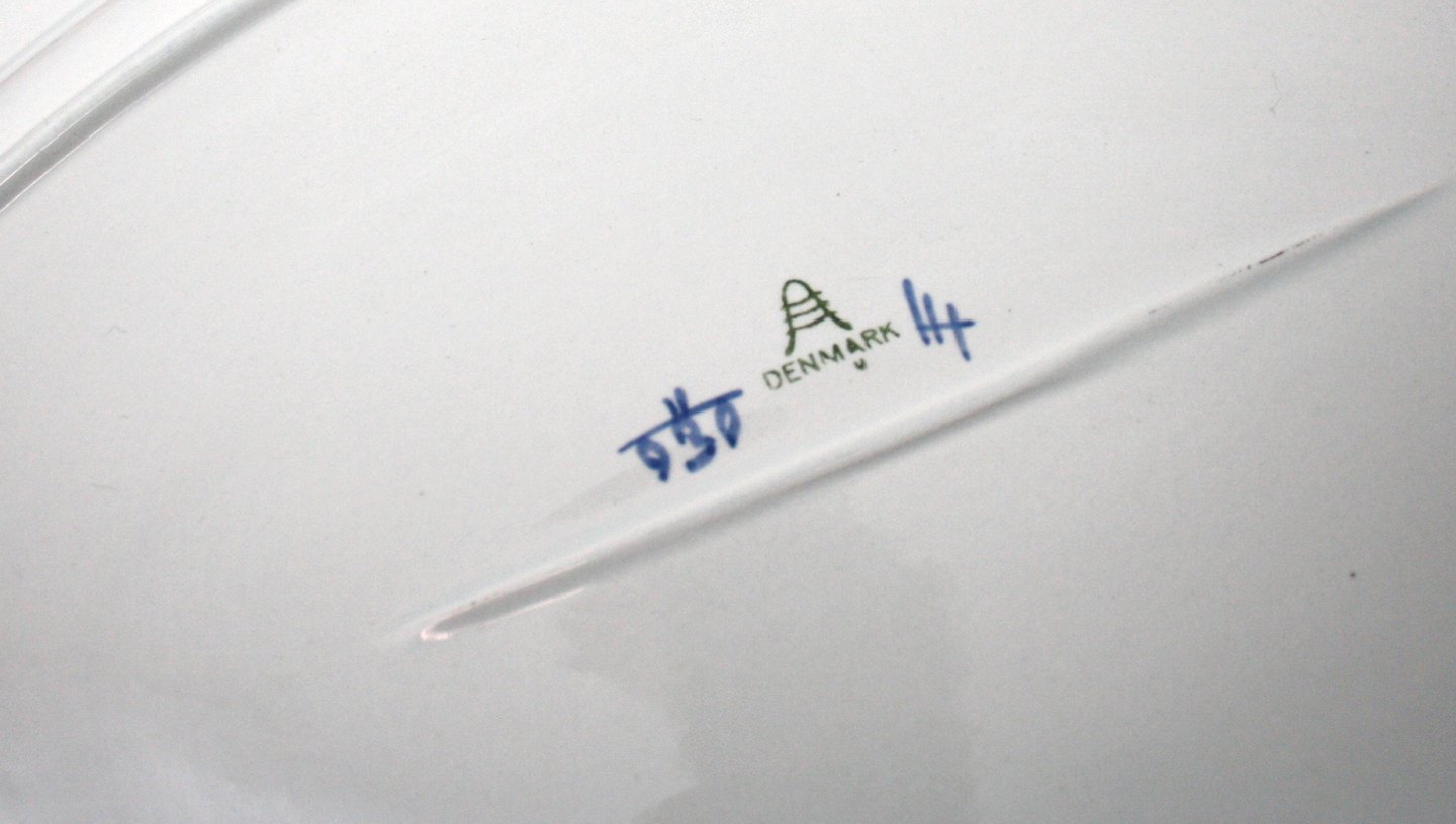 Serveringsfad. Dekorationsnr. 11/928. Længde 32,5 cm. Bredde 23,5 cm. Mikroskopisk chip på kanten. Pris: 275 stk. Lager: 1