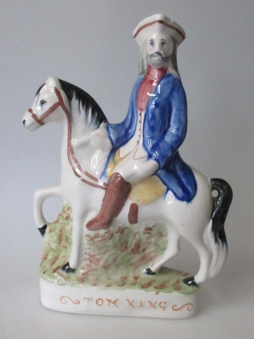 Staffordshire Figur af røveren "Tom King", bemalet fajance, ca. 1840, England. 25 x 17,5 cm.