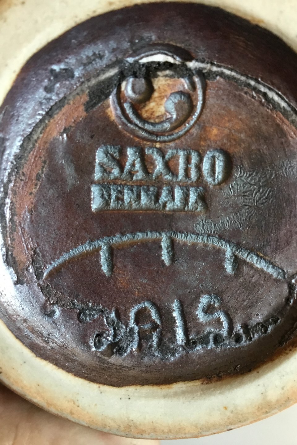 Saxbo Stoneware Vase/Pitcher with Green Glaze. Designed by Jais Nielsen. Measures 15 cm / 5 29/32"