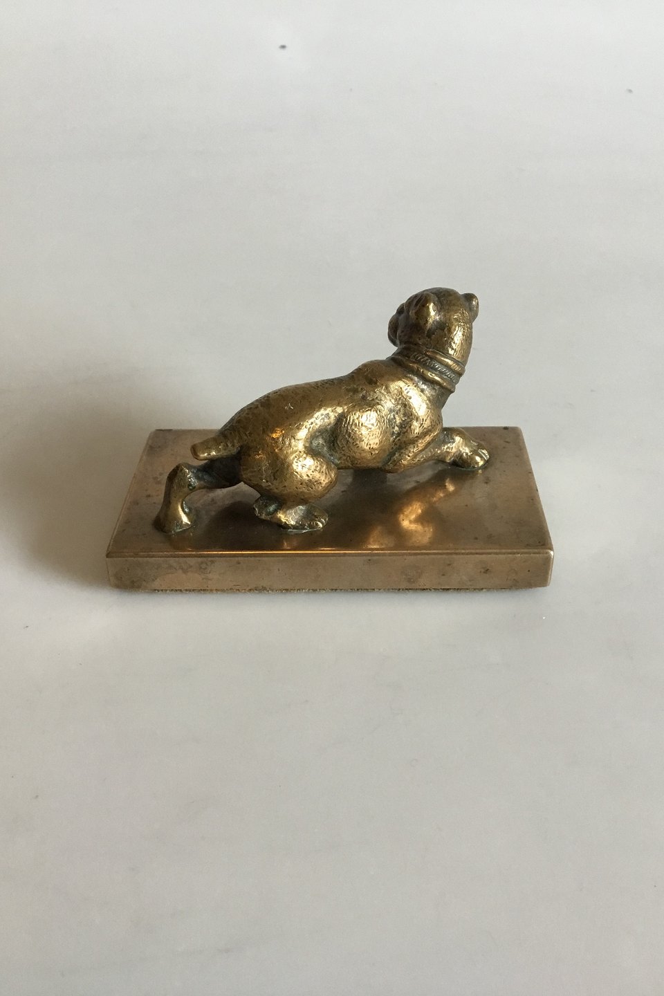 Brevpresser af Bronze med hund. Måler 10,5 cm x 5,5 cm