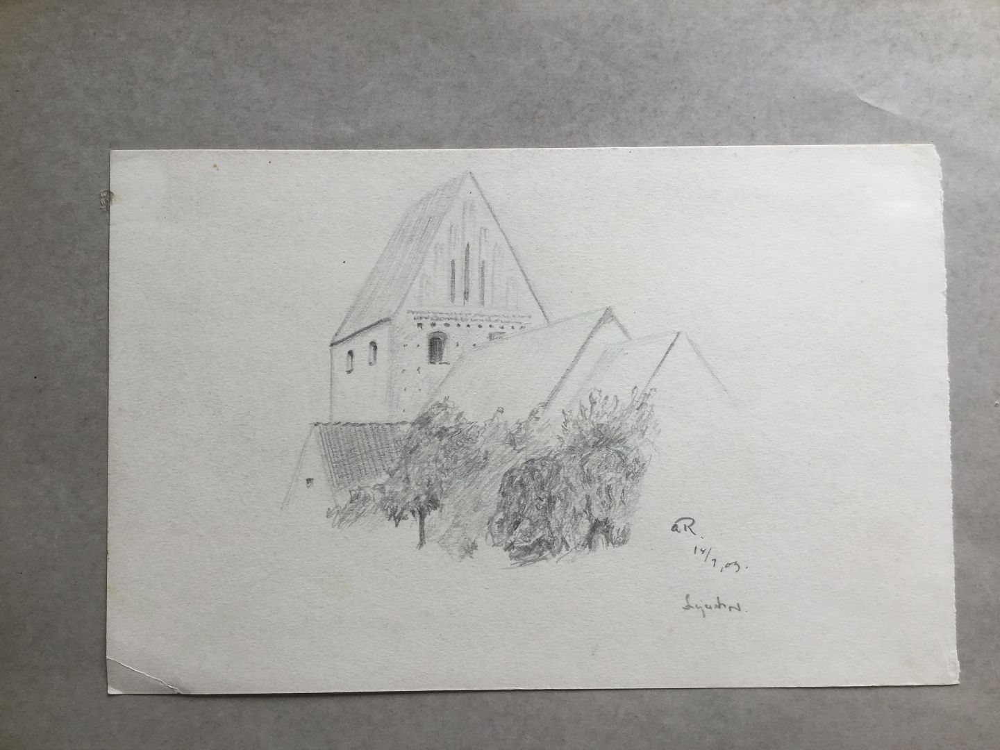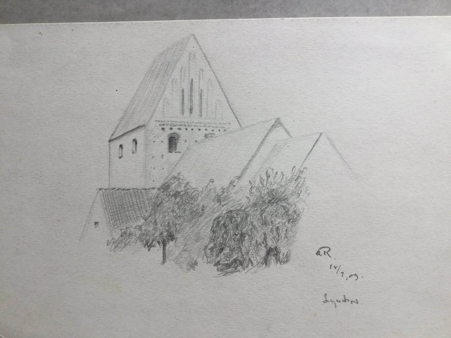 Text available in Danish: Tegning af Aage Rafn - Lejerskov Kirke, Ribe Stift 1909.