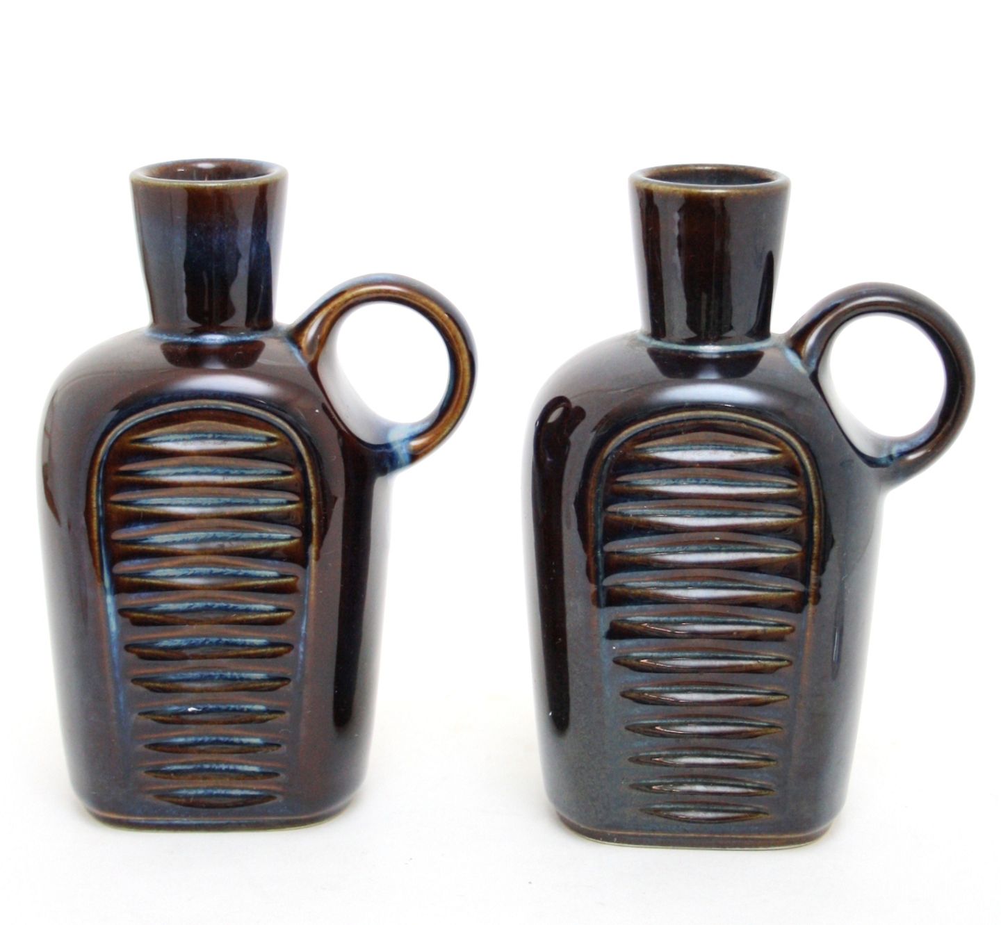 Søholm, Blåglasseret kande designet af Ejnar Johansen i 1960'erne. Formnr. 3348. Signeret EJ. Højde 16 cm. Længde 11 cm. Perfekt stand. Pris: 275 kr. stk. Lager: 2