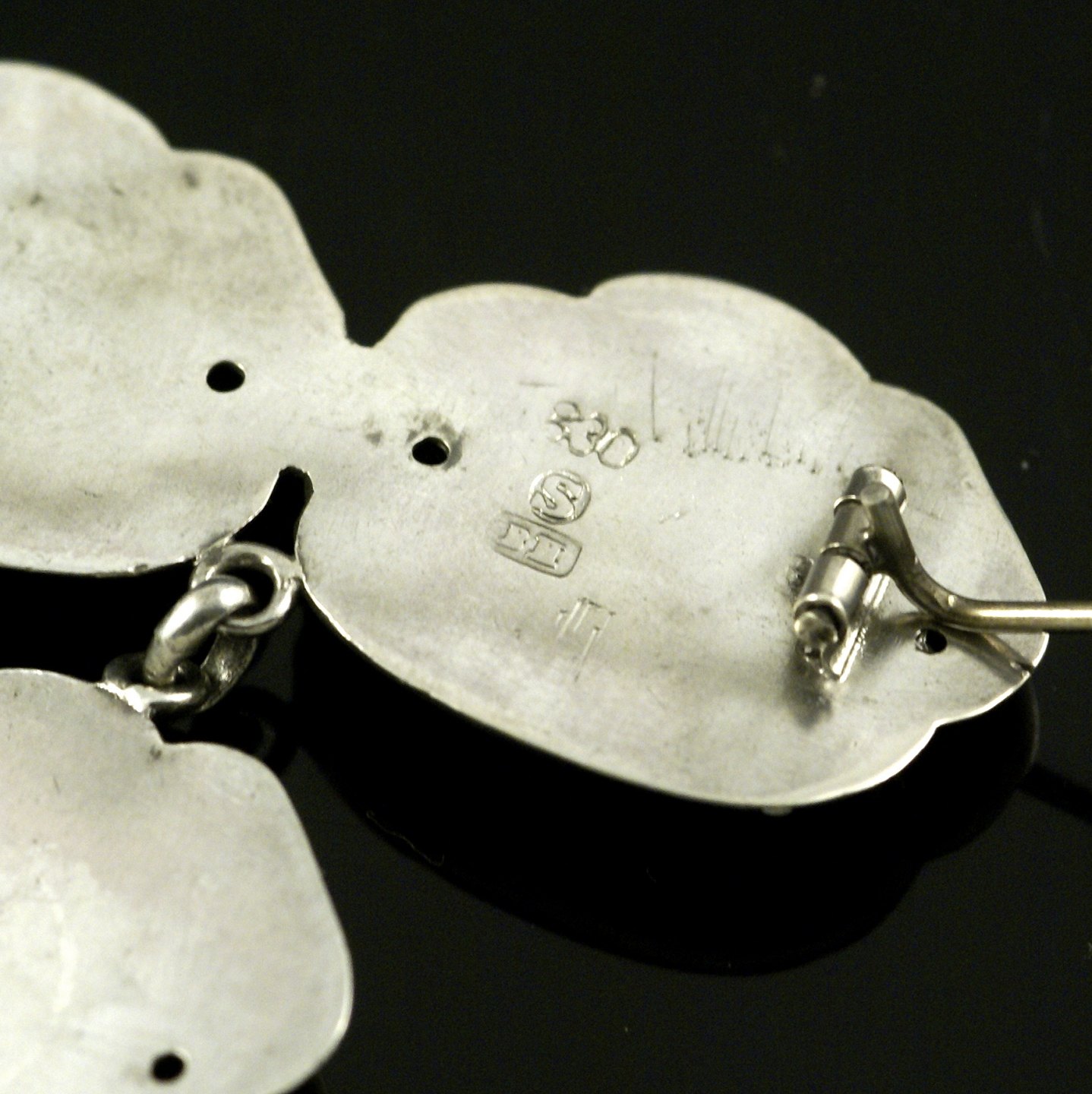 Bernhard Hertz. Skønvirke Broche i sølv med grønne agater.