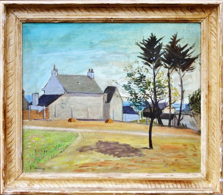 Heiring, Harald (1906 - 1995) Danmark. Huse ved en kyst. Bretagne. Olie på lærred. Signeret.: Heiring 39. 36 x 44 cm.