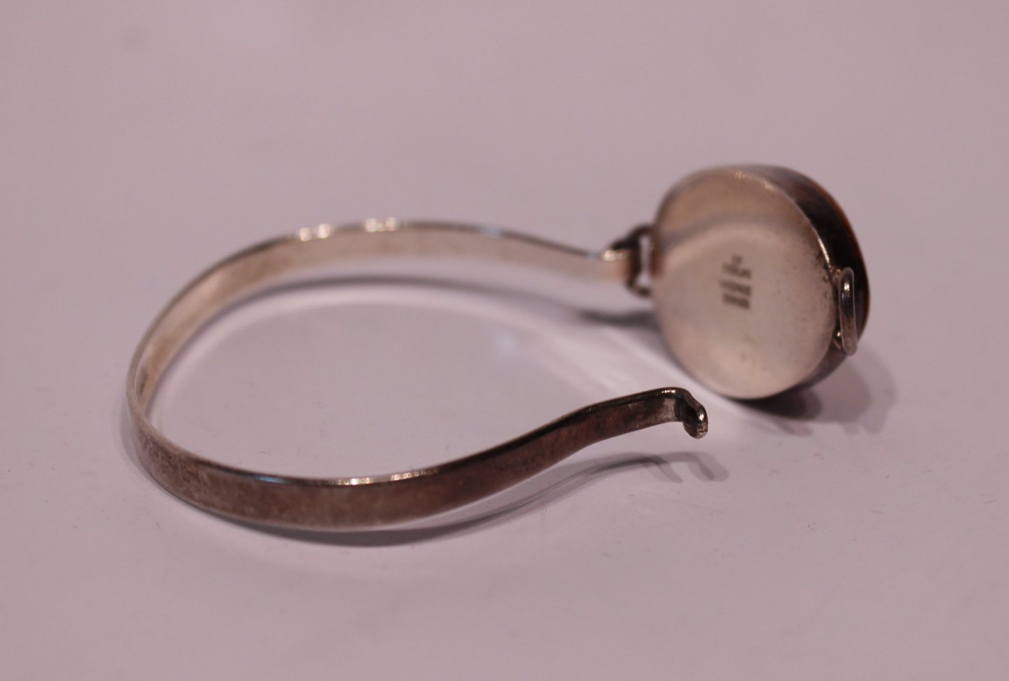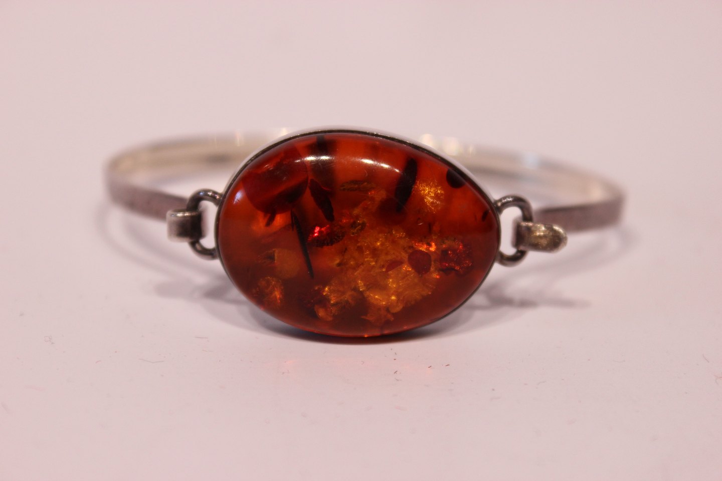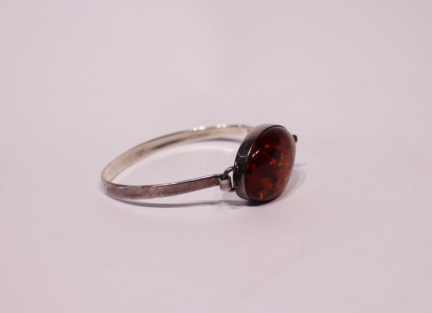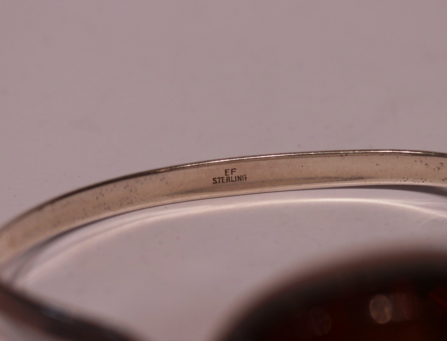 Armring med stor rav klump af 925 sterling sølv og stemplet EF.