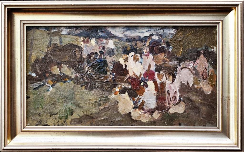 Rudnev, Sergei W. (1956 - ) Rusland: Bazaren. Signeret monogram. 18 x 32 cm.
