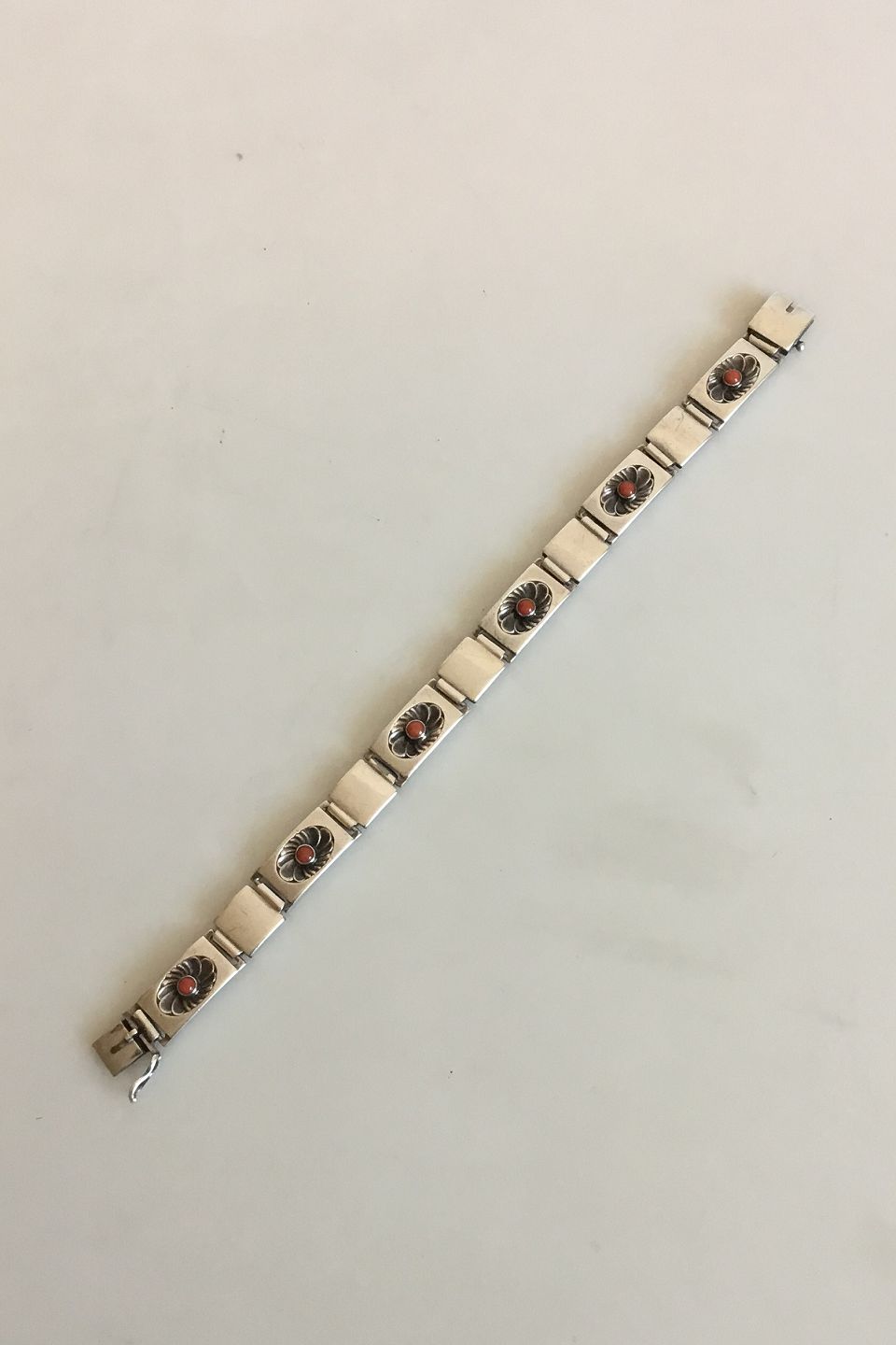 Georg Jensen Sterling Sølv Armbånd No 56B. Med runde røde koraller. Designet af Henry Pilstrup, 1933-44. Måler 19 cm x 1 cm bredt. Vejer 27 g.