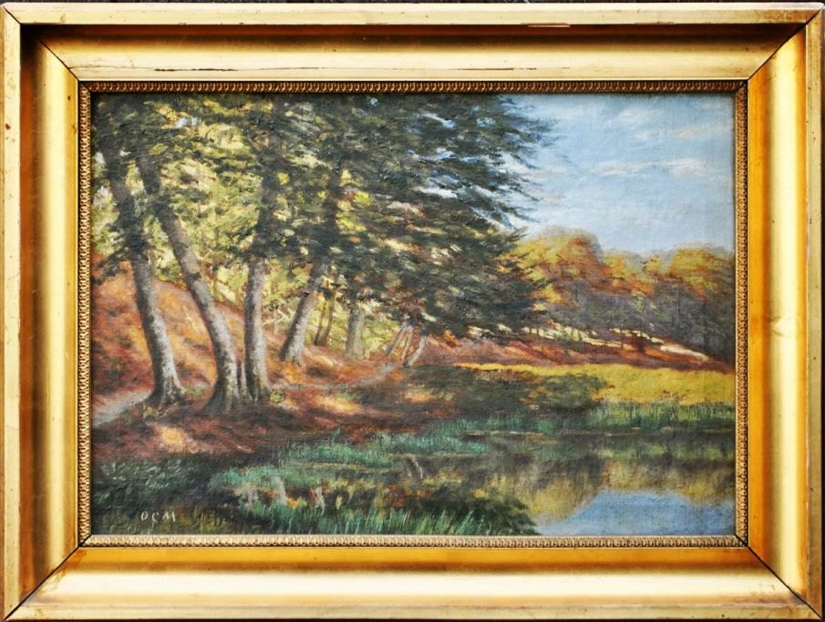 Møller, O. C. (19. årh.) Skov parti. Olie på lærred. Signeret.