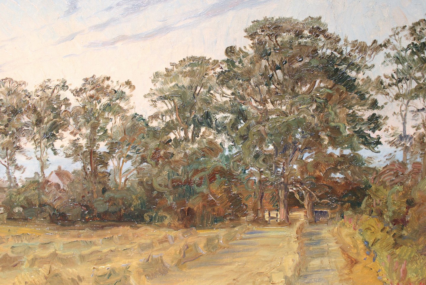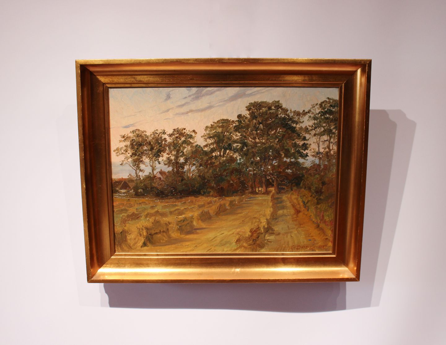 Oliemaleri af dansk natur med forgyldt ramme, af Carl Budtz-Møller f. 1882 d. 1953