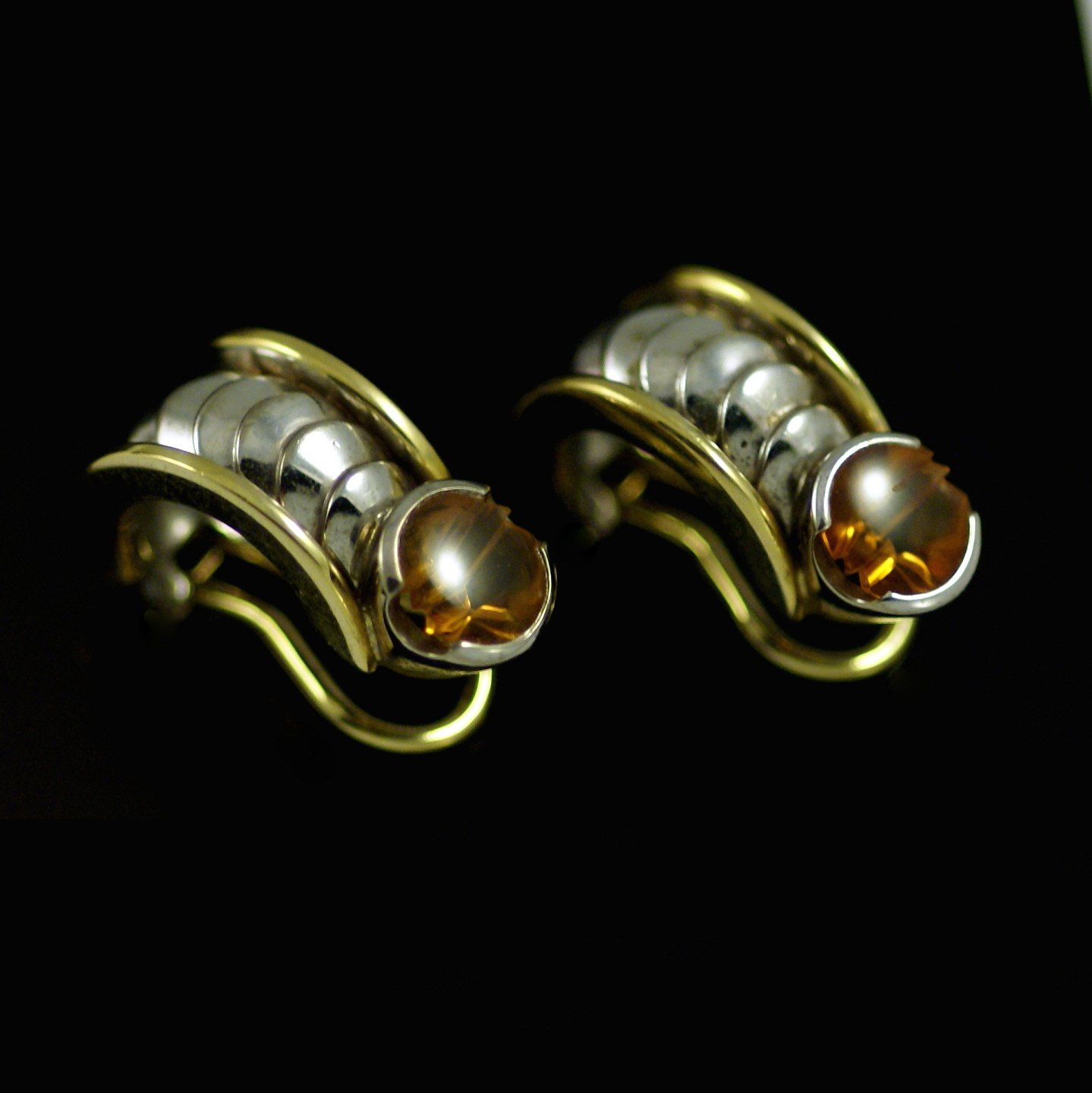 Georg Jensen Øreclips i 18kt guld og hvidguld med citrin.- 'On Track'