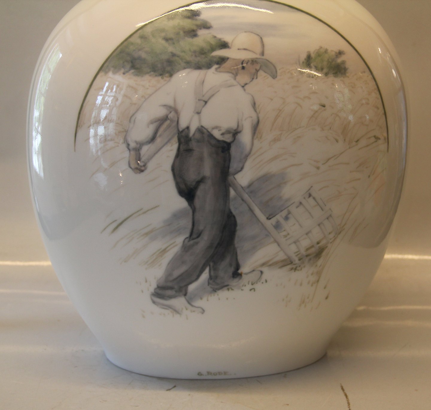 Royal Copenhagen In mint and nice condition 1458-11790 Unique Vase 40 x 34 cm The harwester Signed GR Gotfred Rode AD XII (1912) The Harwest