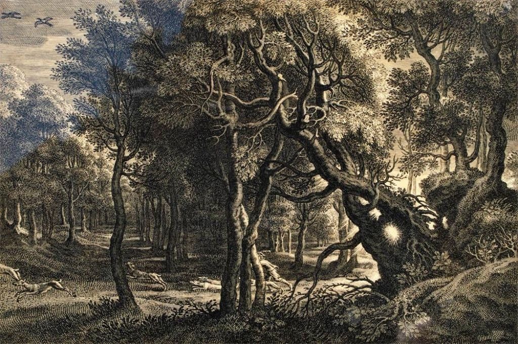 Hendricx, Gillis (1577 - 1640). Belgium. Hunting scene. After Rubens. Signed. Engraving. 30 x 44 cm.