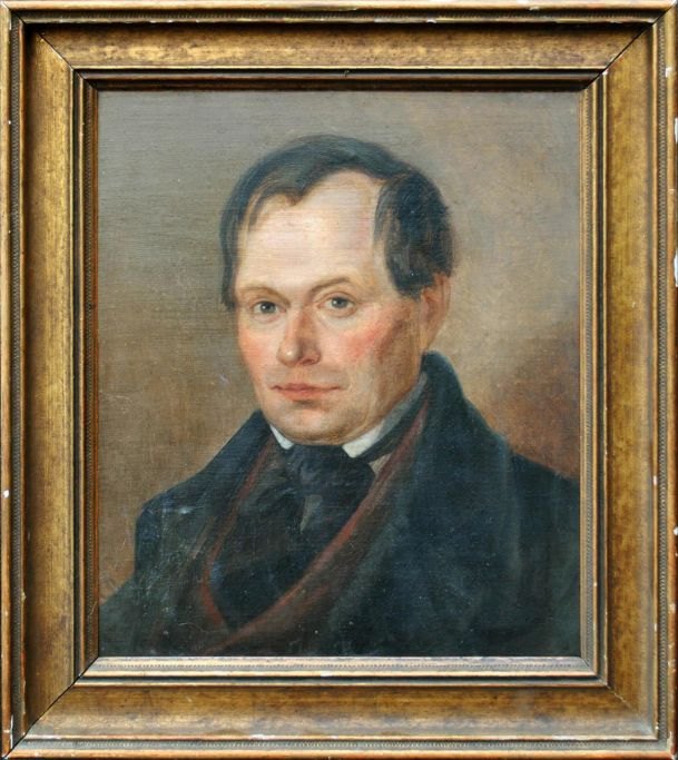 Dansk kunstner (19. årh.): Herre portræt. Olie på lærred/træ. Usigneret. 39 x 34 cm.