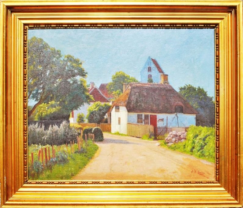 Broge, Alfred (1870 - 1955) Danmark: Motiv fra Lindelse, Langeland. Olie på lærred. Sign.: Alf. Broge. 60 x 74 cm.